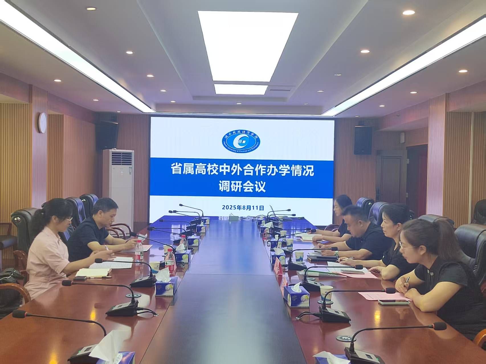8月11日,湖南省发改委服务价格和收费管理处处长施平一行来校开展中外合作办学情况调研。校党委委员、副校长潘爱民、财务处处长曹松林、厚生国际教育学院直属党支部书记肖平飞参加座谈,会议由潘爱民主持。