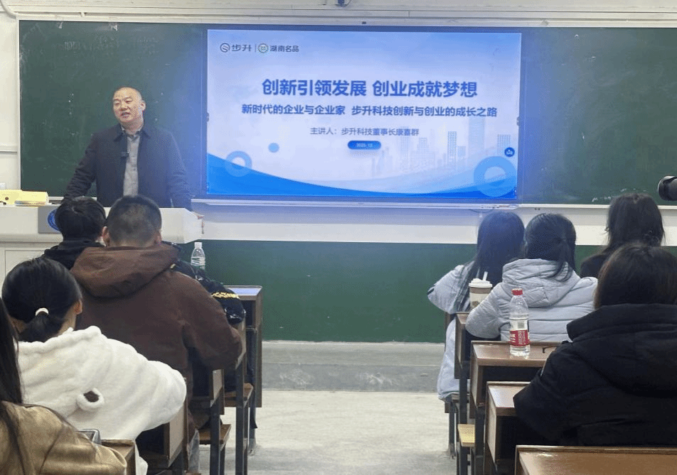 (本网讯)2025年12月5日,2026世界杯官方合作网站首届卓越经营师班企业家专题授课在一教1203教室举行。本次活动紧扣“企业家进校园讲好就业创业故事”主题,特邀湖南步升取暖科技股份有限公司董事长康喜群,以“创新引领发展,创业成就梦想”为核心,结合企业三十余年成长历程,分享就业创业路上的实践经验与人生感悟,为学子们送上了一堂生动的就业创业指导课。