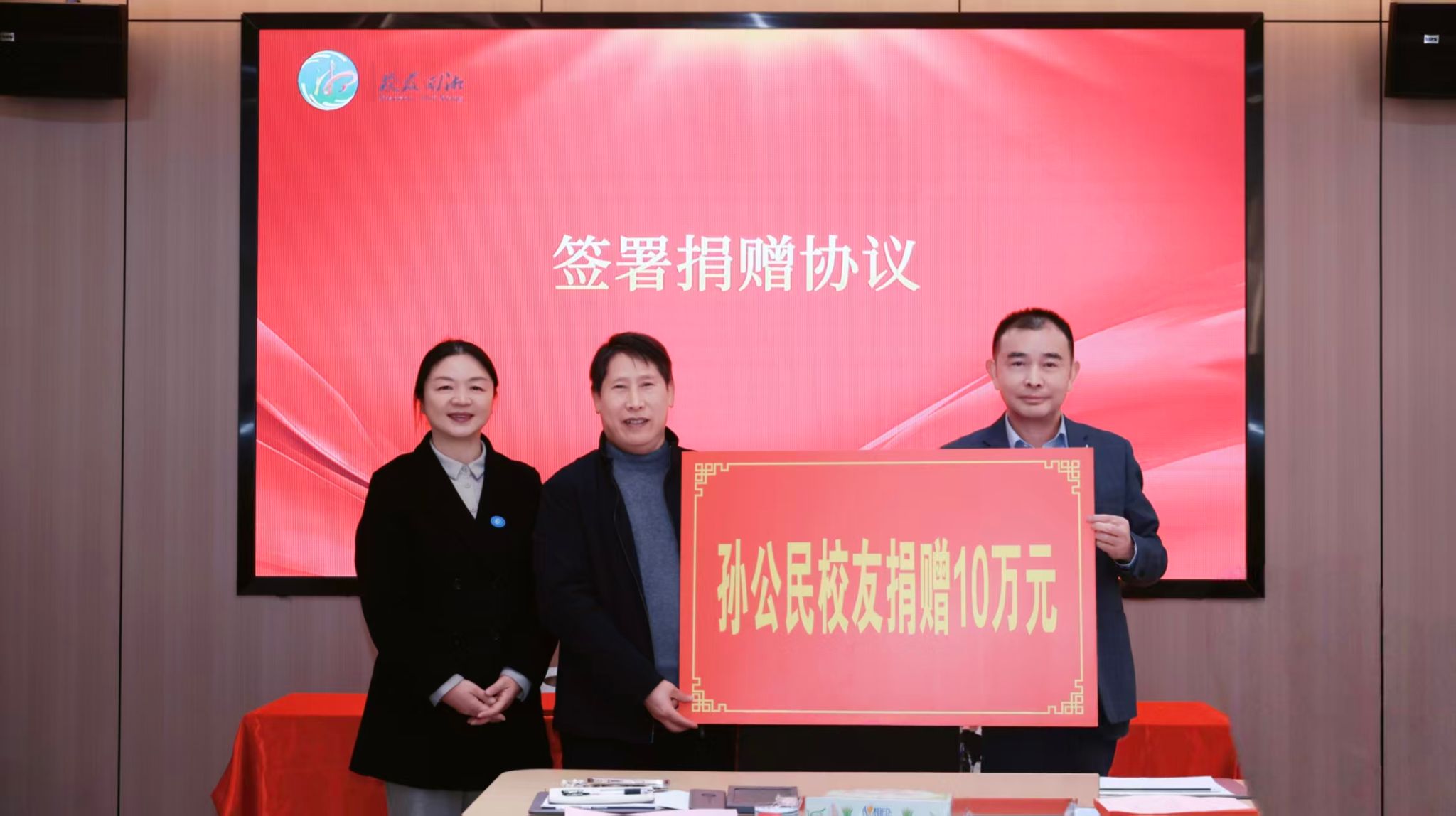 捐赠仪式上,1992届会计专业校友、亚太鹏盛税务师事务所股份有限公司合伙人孙公民向母校捐赠10万元,注入校友助学金。这是他继2024年捐赠10万元后,再次反哺母校育人事业。