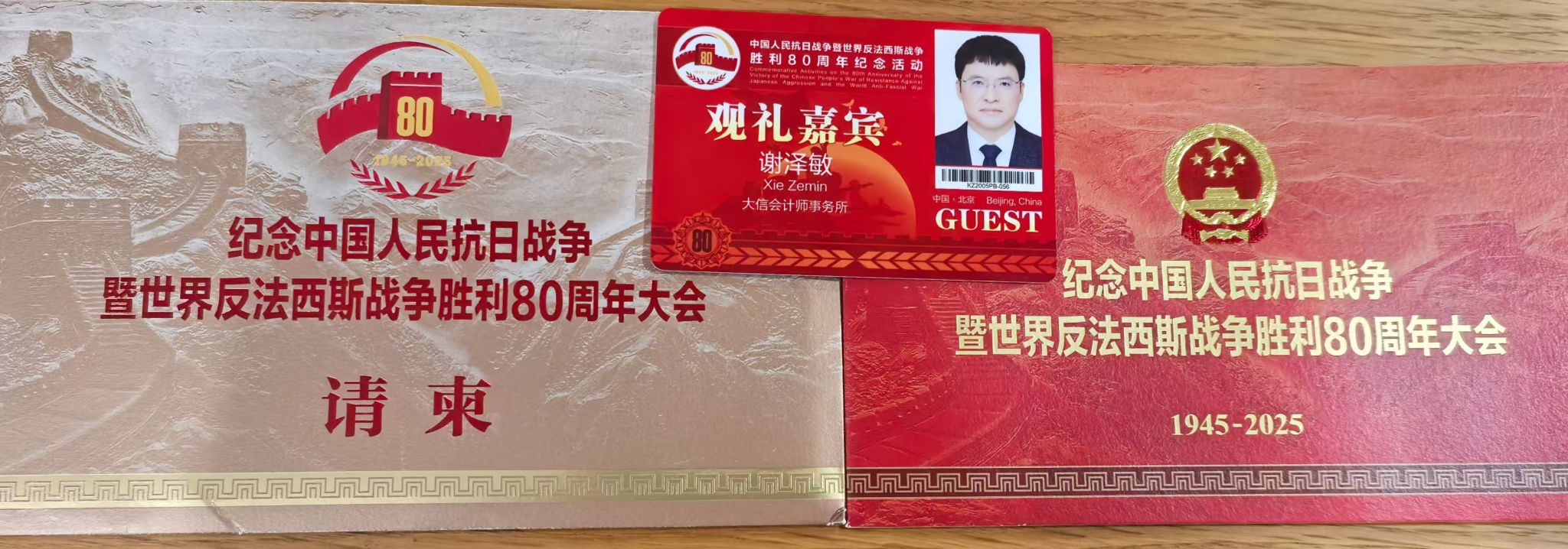 (本网讯)9 月 3 日上午,纪念中国人民抗日战争暨世界反法西斯战争胜利 80 周年大会在北京天安门广场隆重举行,中共中央总书记、国家主席、中央军委主席习近平发表重要讲话并检阅部队。世界杯官网84级财政专业校友大信会计师事务所(特殊普通合伙)首席合伙人谢泽敏受邀现场观礼。