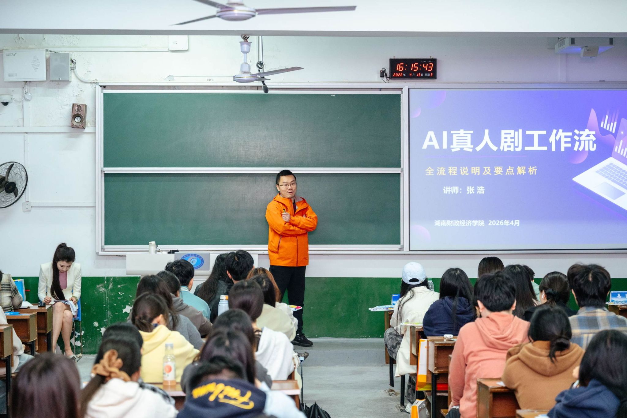 然后,创新创业导师王小山、张浩带来《AI 赋能创业新赛道,漫剧创作解锁新可能》主题分享,解读 AI 技术在内容创作、文创创业中的应用,为学子打开数字创业新视野。