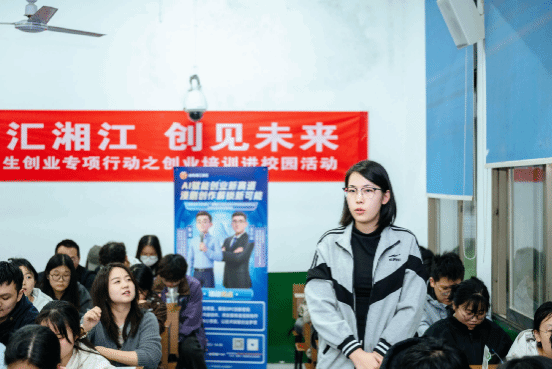 活动伊始,余华书记致辞。她介绍了学校“五力托举”创业生态圈与三大湖财创业特色,勉励同学们把握湘江新区政策与资源,敢闯敢试,将创意转化为创业实践。