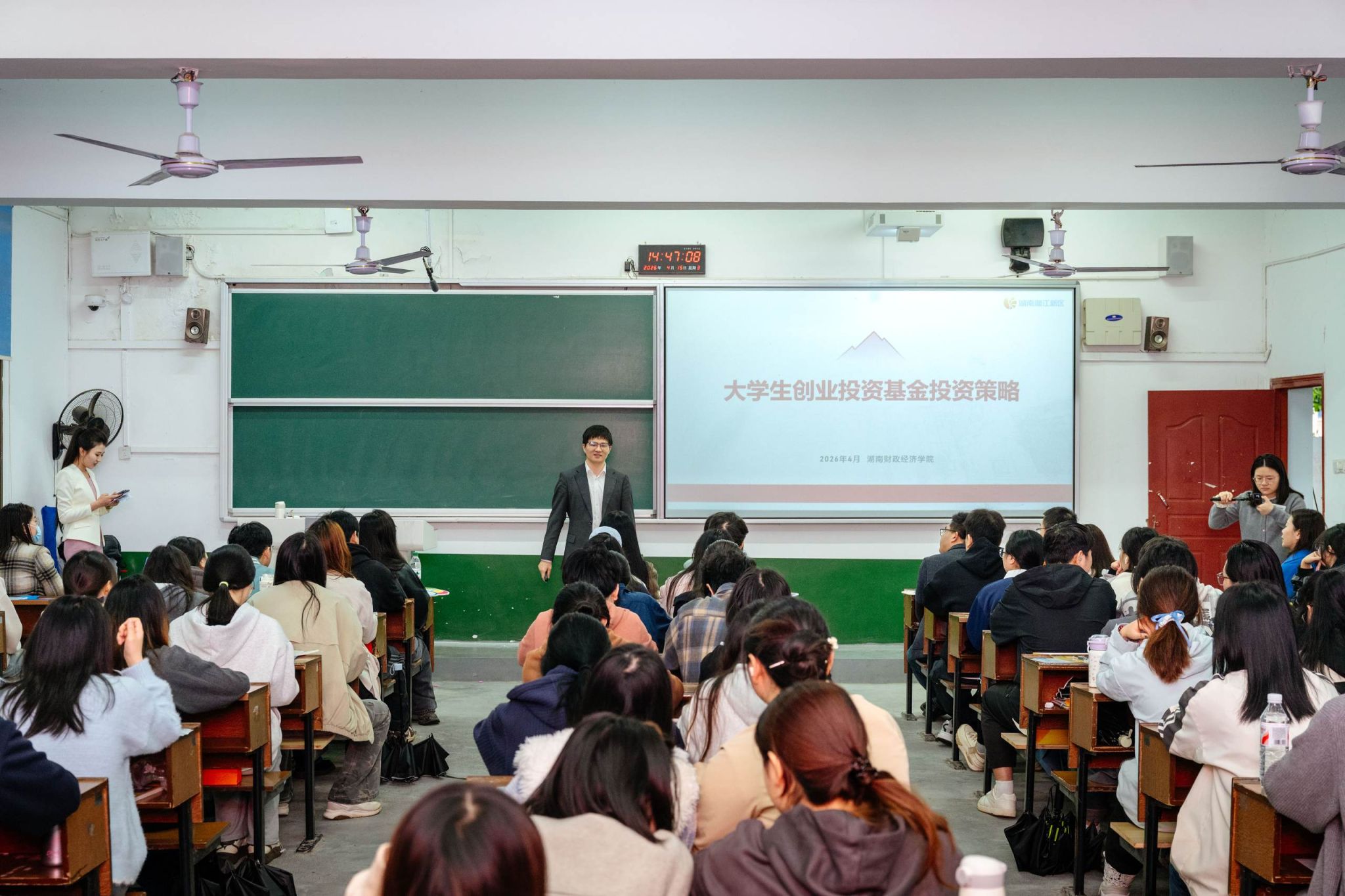 随后,龚跃祖部长以《投融资思维与创业项目孵化》为题授课,结合实战案例,讲解项目筛选、融资路径及孵化运营要点,为学子提供资金对接与项目成长指导。