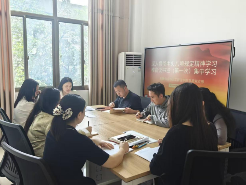 (本网讯)4月28日下午,创新创业与人工智能学院直属党支部在一教南206会议室开展深入贯彻中央八项规定精神学习教育读书班暨4月一月一课一片一实践主题党日活动。支部全体党员参加了会议,会议由直属党支部书记余华同志主持。