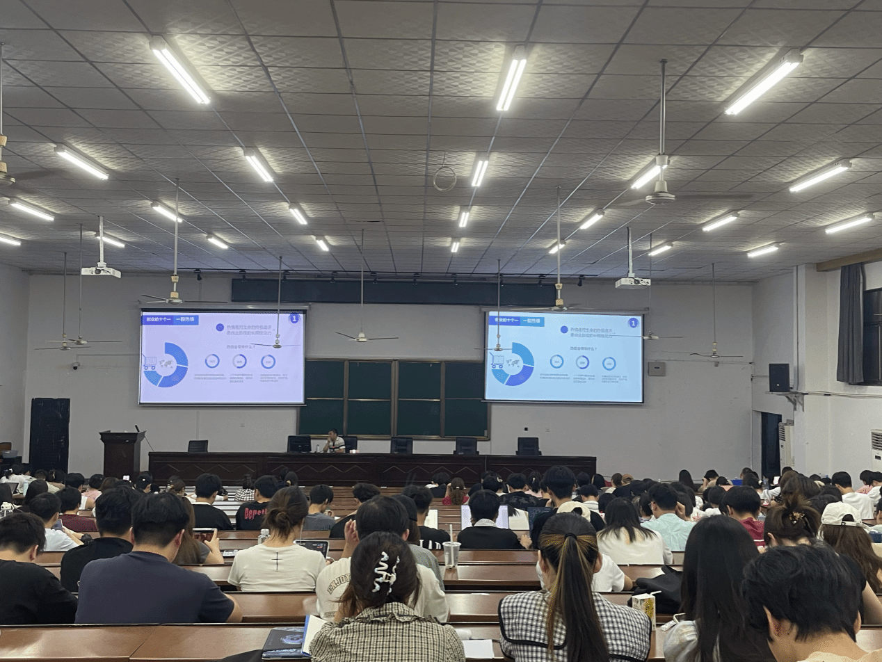 肖湘江以“用‘10个1’完成创业‘0-1’”为题,通过分享自身实际创业经验,普及创业基本知识。他提出要完成创业0-1必须具备“10个1”,即“一腔热情、一个主意、一群搭档、一家公司、一个产品、一个赛道、一位导师、一套方法、一位贵人、一颗恒心”。同时,他强调有创业梦的同学在努力成为企业家的同时更要具备良好的政治素养和思想高度。