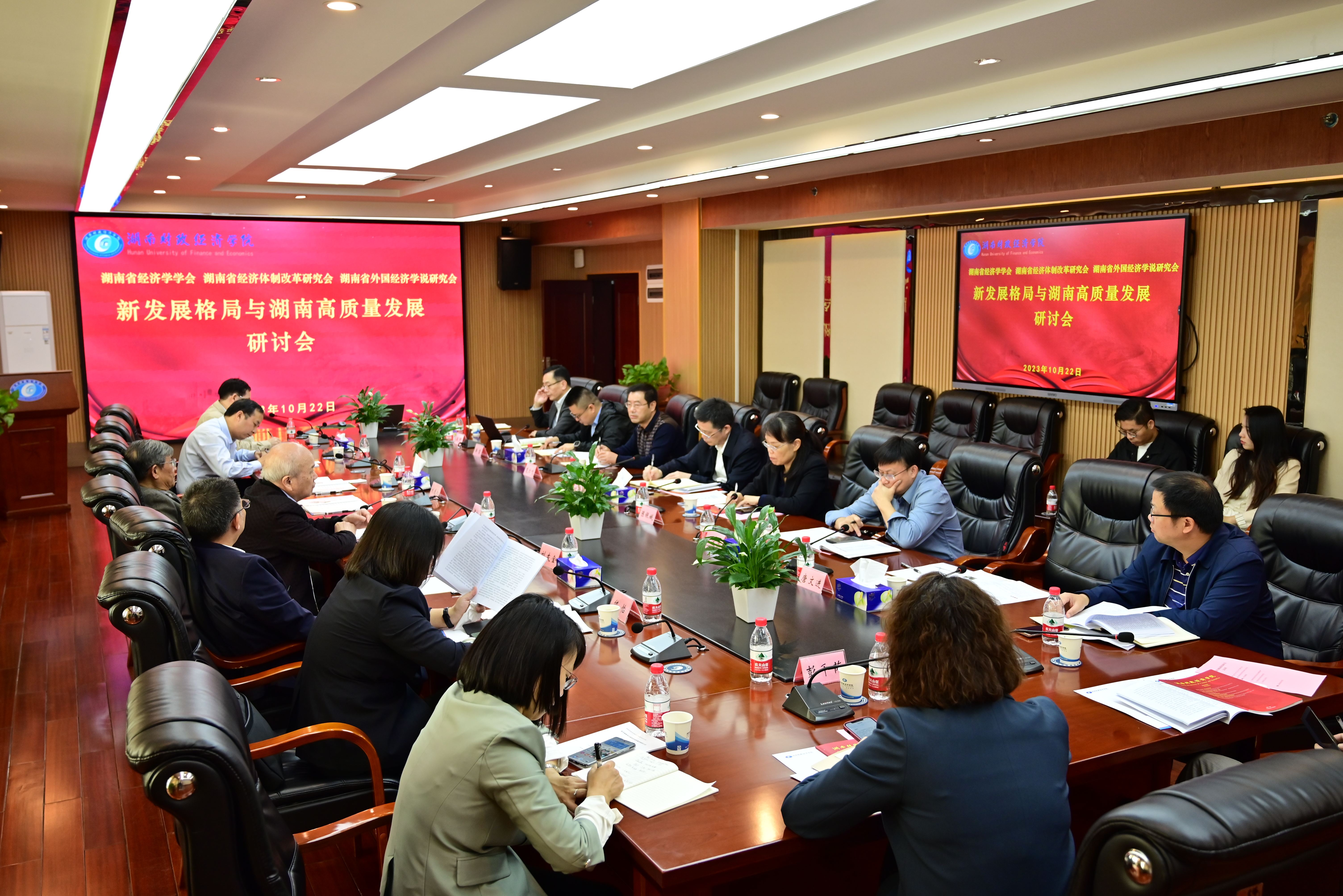 (本网讯)10月22日上午,来自湖南省经济学学会、湖南省经济体制改革研究会、湖南省外国经济学说研究会的20余位省内经济学领域权威专家学者齐聚学校,就“新发展格局与湖南高质量发展”主题进行交流研讨,共贺学...