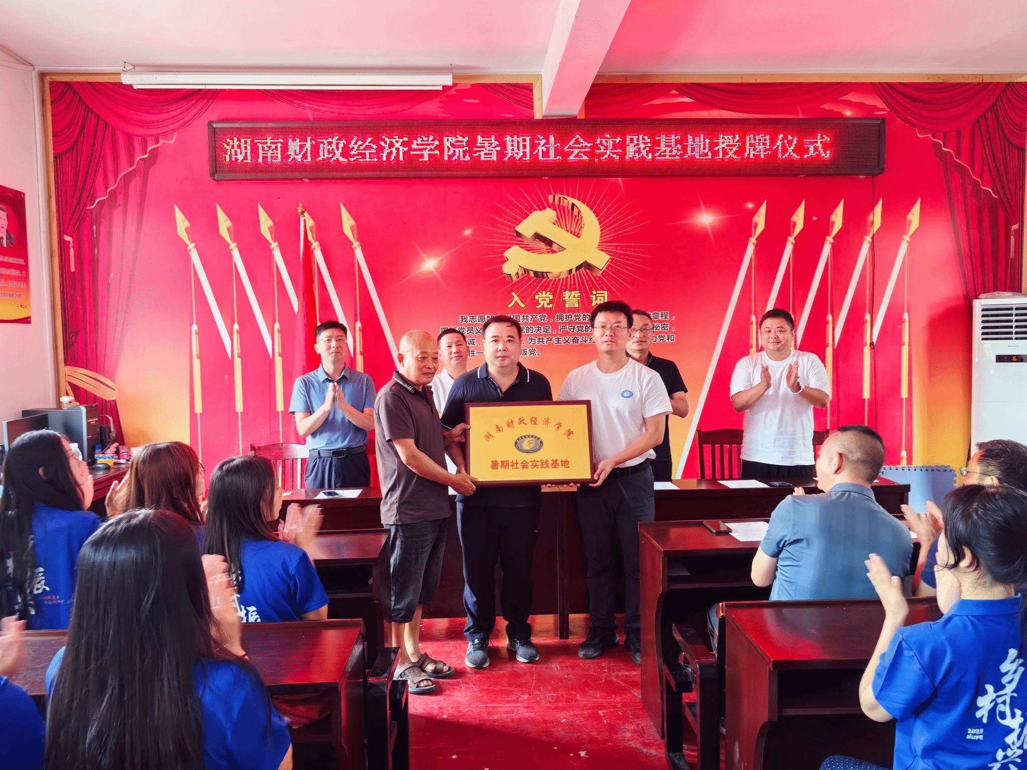 (本网讯)7月29日,世界杯官网暑期社会实践基地授牌仪式在湖南省怀化市芷江侗族自治县牛牯坪乡青叶树村村部会议室举行。校党委委员、宣传部、统战部部长文炳勋,学生工作部、团委主要负责人,芷江侗族自治县委常委、县...