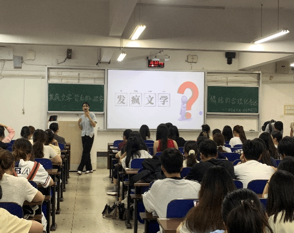 讲座伊始,甘婷老师以当下流行的“发疯文学”为切入点,生动有趣地引出了本次讲座的核心内容。老师深入剖析了“发疯文学”背后的心理学原理,借助巴赫金的“狂欢理论”,阐述了其模糊身份与圈层的“中间地带”属性,让同学们明白“发疯文学”是一种在平民、自由的“狂欢世界”里的情绪宣泄途径。
