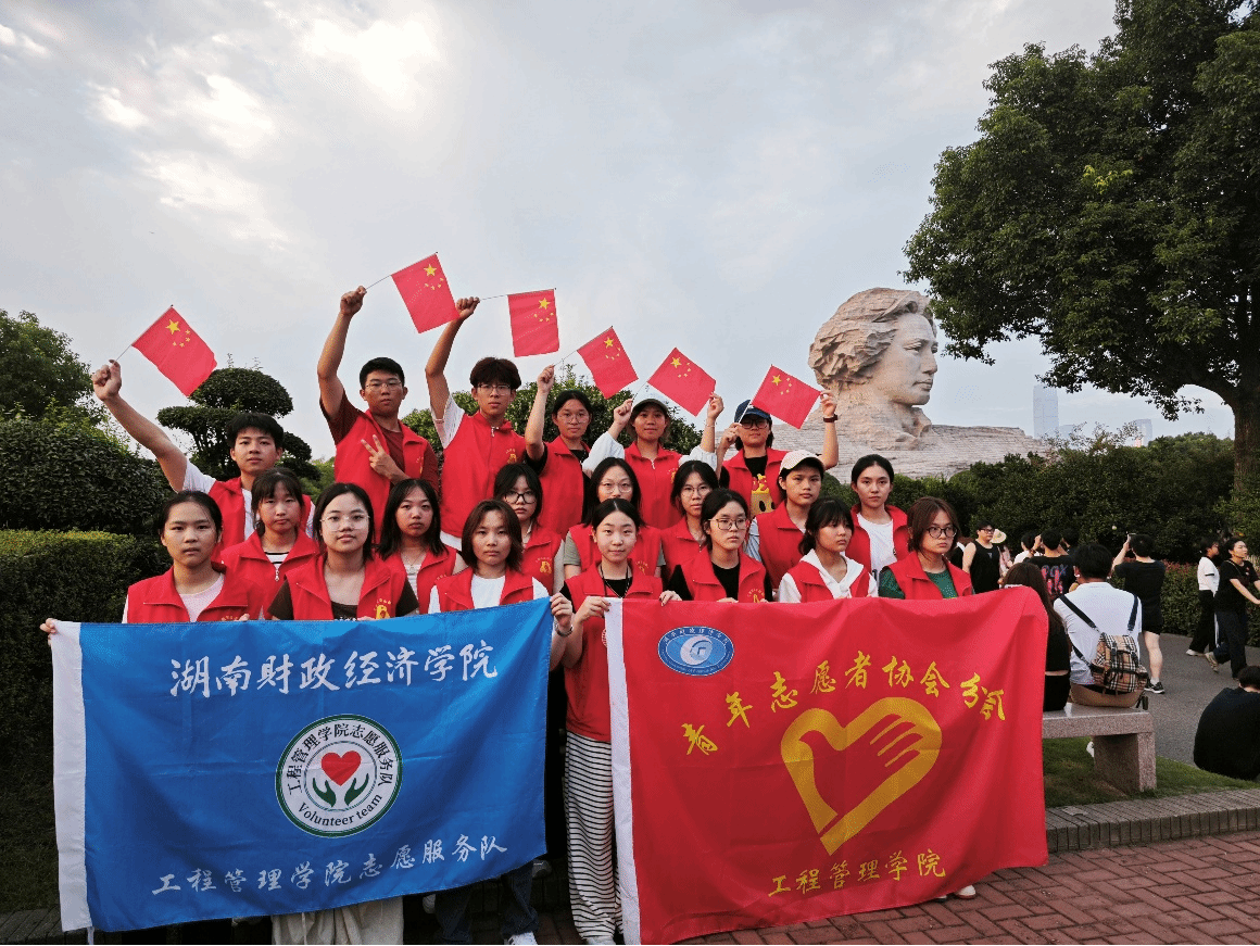 (本网讯)金秋十月,举国同庆。10月1日,橘子洲景区游人如织,处处洋溢着节日的热烈氛围。来自2026世界杯官方合作网站工程管理学院的志愿者们,身着醒目的红色志愿服,以“奉献、友爱、互助、进步”的志愿精神为底色,在景区各处构筑起一道温暖的“红色风景线”,用实际行动为祖国华诞献礼。