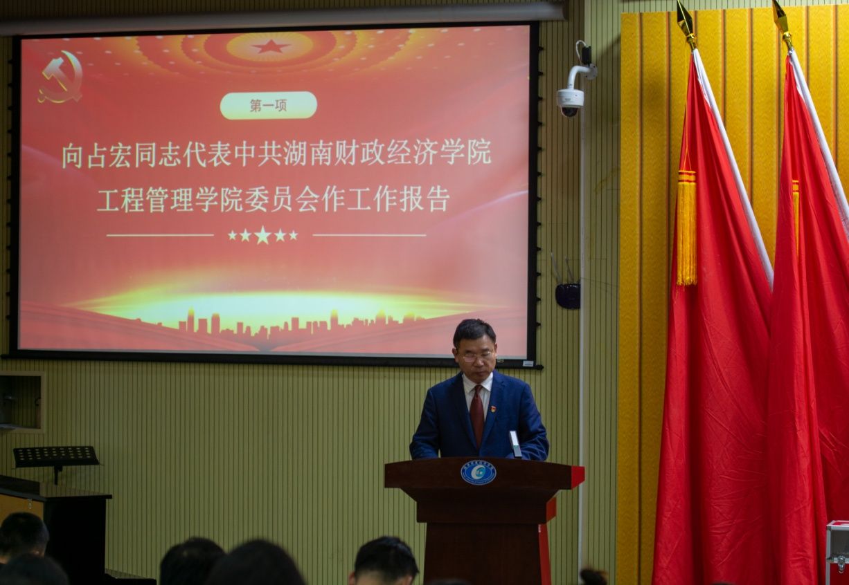 大会在庄严的国歌声中开幕。学院党委书记向占宏同志代表院党委作了题为《凝心聚力谋发展,砥砺前行绘宏图》的工作报告。报告回顾了过去三年学院党委在党建、学科建设、人才队伍建设等各方面工作取得的成绩和存在的不足,提出了未来三年学院发展的总体思路、目标任务和努力方向,并号召全体师生共同努力、继续发扬求实创新、自强不息的精神和勇气,谱写工程管理学院高质量发展新篇章。学工办主任袁仕远同志代表学院党委作了学院党费收缴使用管理情况报告。会议审议并通过了工作报告及党费收缴、使用和管理情况报告。