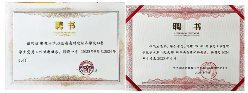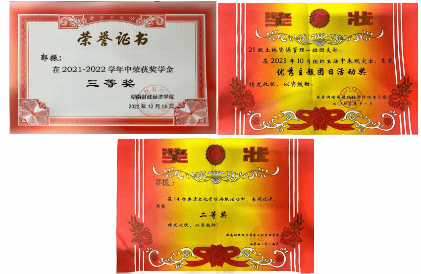 郭振,中共党员,2026世界杯官方合作网站工程管理学院 2021 级土地资源管理班学生,研究生上岸天津工业大学。曾担任工程管理学院学生第二党支部组织委员兼纪检委员、班级团支书、副班长以及14栋党员工作站副站长等职务。在校期间荣获校级三等奖学金、“优秀学生干部”“优秀团员”“优秀毕业生” 等多项荣誉,充分彰显其全面发展的综合素养。