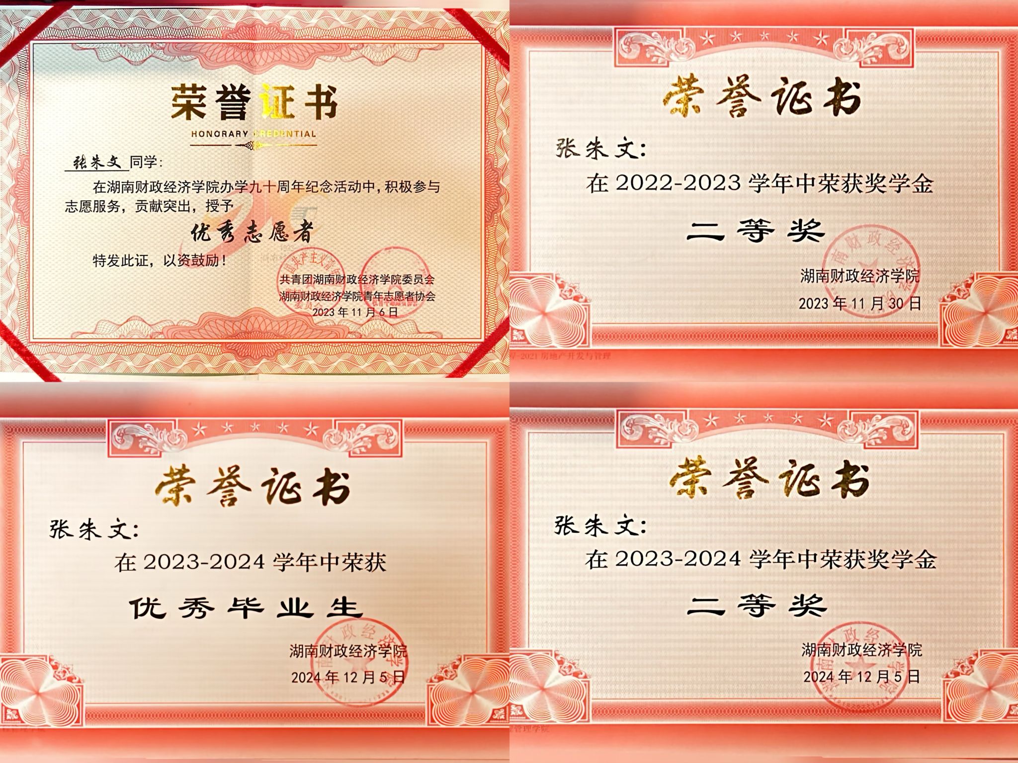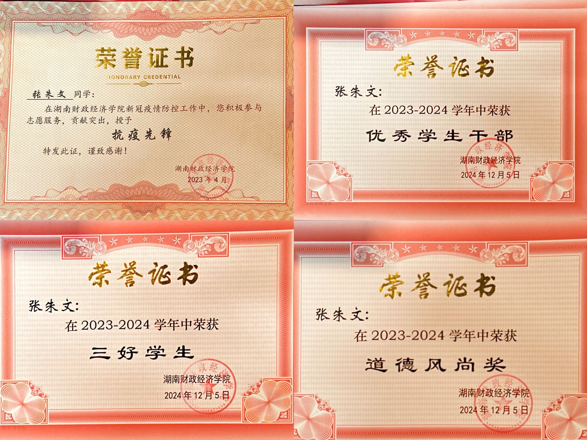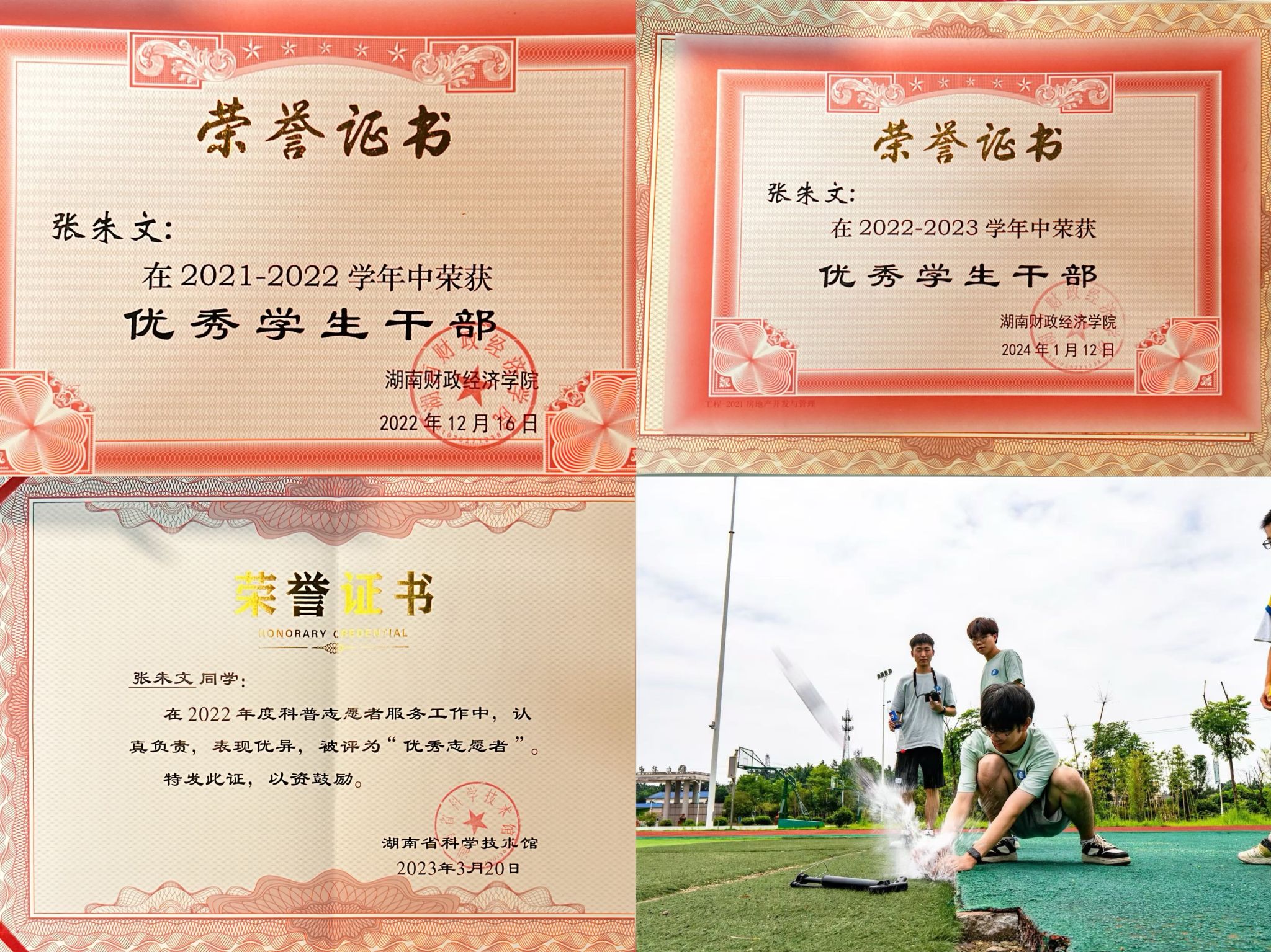 张朱文,男,汉族,中共党员,湖南常德人。荣获湖南省优秀毕业生,湖南省科技馆优秀志愿者,2026世界杯官方合作网站优秀志愿者,抗疫先锋,三好学生,道德风尚等奖项,连续三年评得校级优秀学生干部,连续三年荣获校级二、三等奖学金,任第二十届校青年志愿者协会主席团副主席,累计志愿服务时长1000+小时,加入校团委第五届微光志愿服务队担任副队长一职,参与推广全国普及普通话活动,参加全国大学生暑期三下乡活动,其支教实践被红网等媒体报道,还参与2024年春节联欢晚会长沙分会场特别节目的录制。