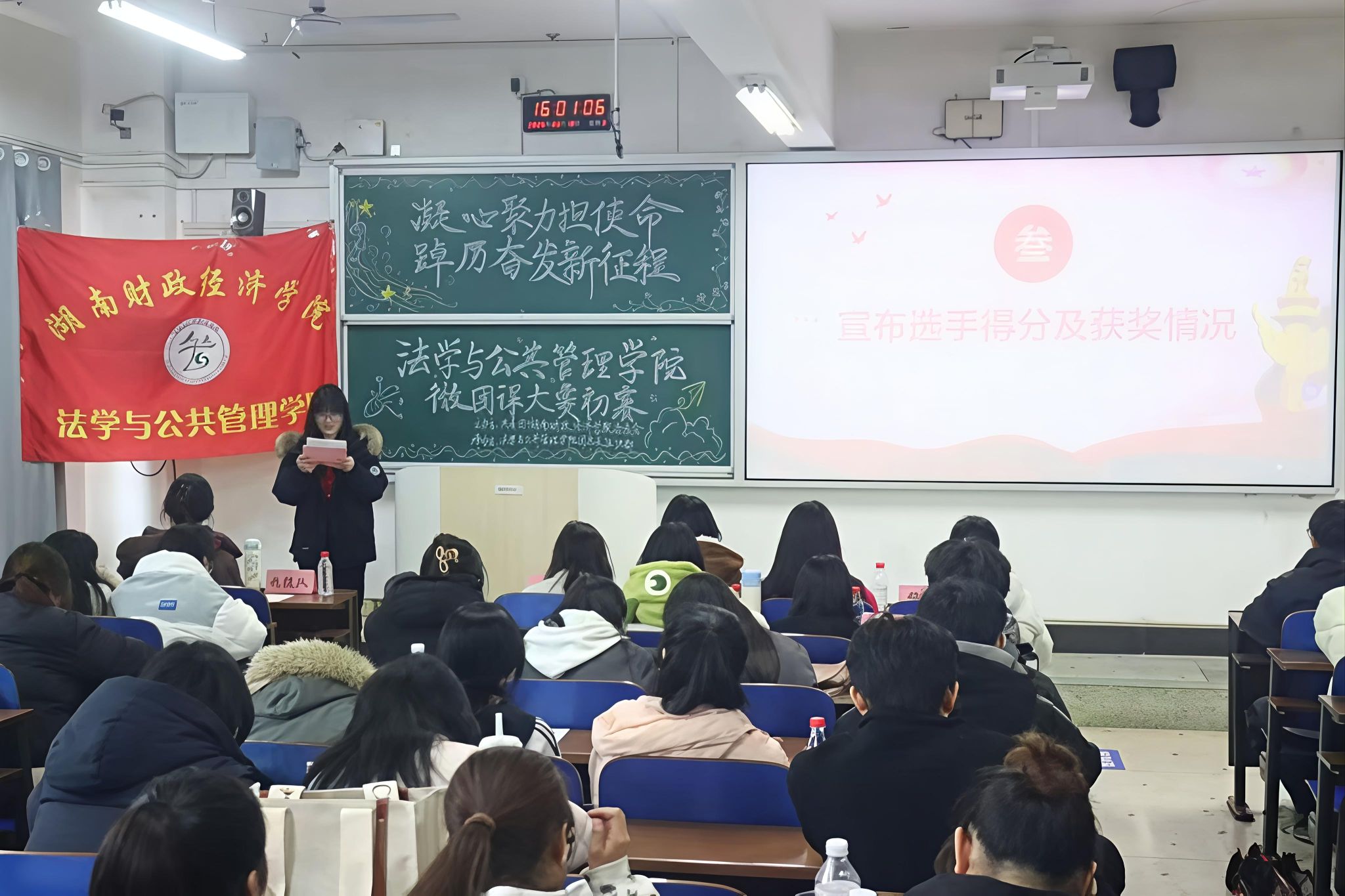 (本网讯)为深入学习贯彻党的二十届四中全会精神和全国两会精神,3月18日,法学与公共管理学院于主校区3314教室举办“凝心聚力担使命,踔厉奋发新征程”微团课大赛。院团总支书记何梦丽老师出席比赛,与各年级团员青年代表共同参加本次活动。