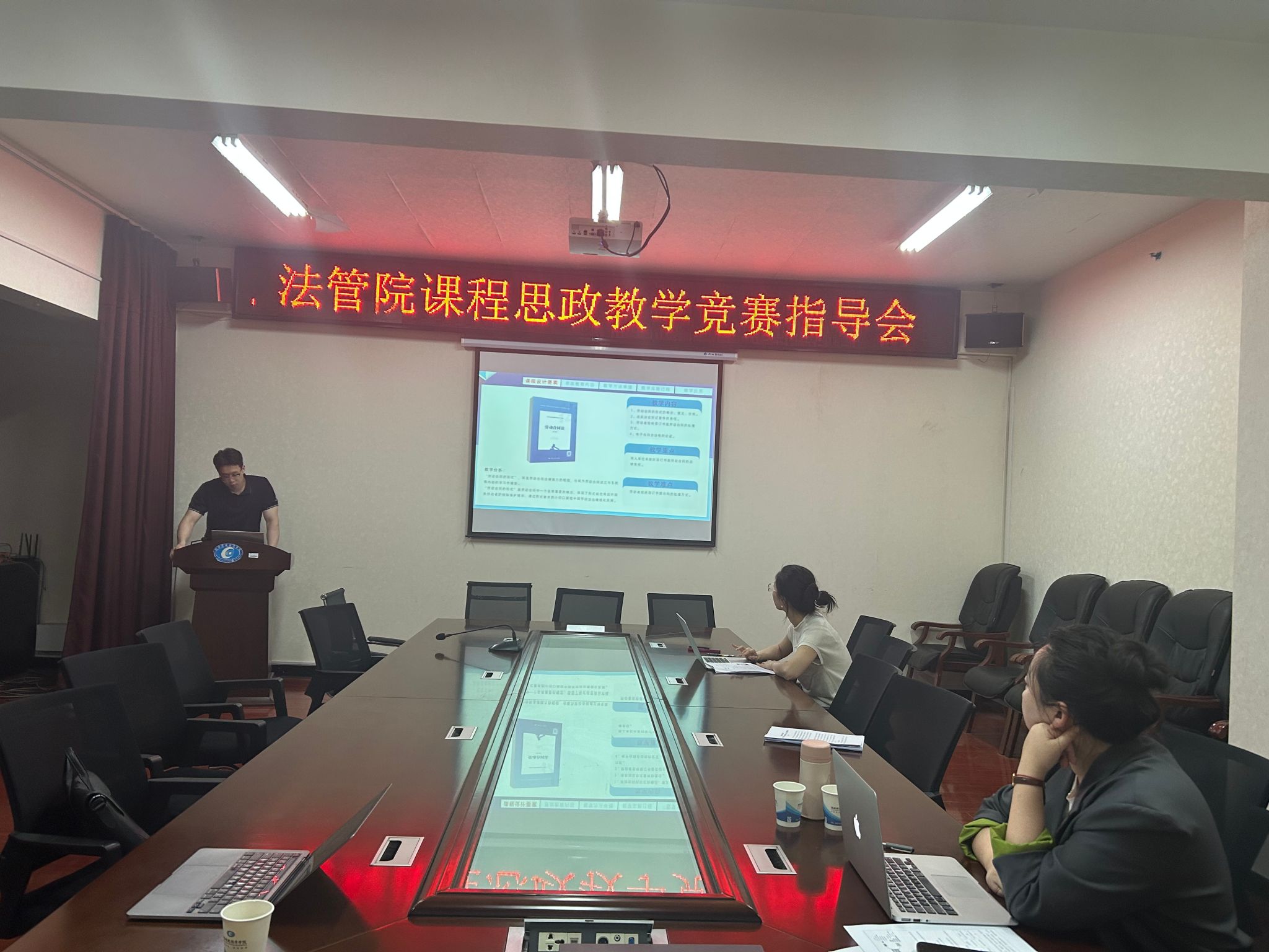 (本网讯)4月16日晚,法学与公共管理学院在414-2会议室举办课程思政教学竞赛专题指导会,通过"示范+诊断"的双向赋能模式,推进思政育人质量接续提升。参赛教师呈现45分钟教学设计方案及15分钟说课展示,充分展现了专业课程与思政元素深度融合的创新探索。