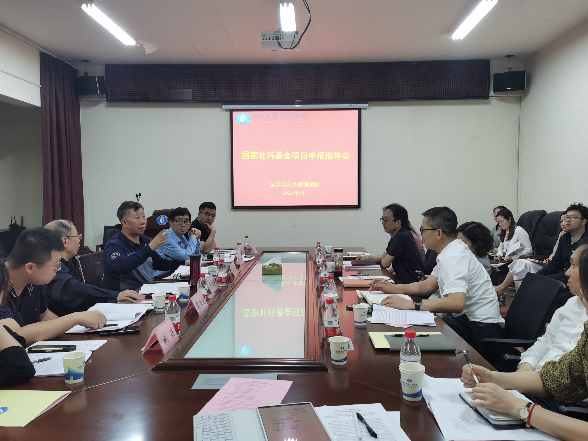 (本网讯)4月26日下午,法学与公共管理学院在办公楼414-2会议室召开国家社科基金项目申报交流会,学院邀请南开大学张文宏教授、武汉大学罗教讲教授、湖南女子学院副教授邵汉清作项目申报指导,会议由法学与公共管理学院党政负责人何四海主持,校党委书记杨兰英出席,学院拟申报2024年度国家社科基金项目的教师参加会议。