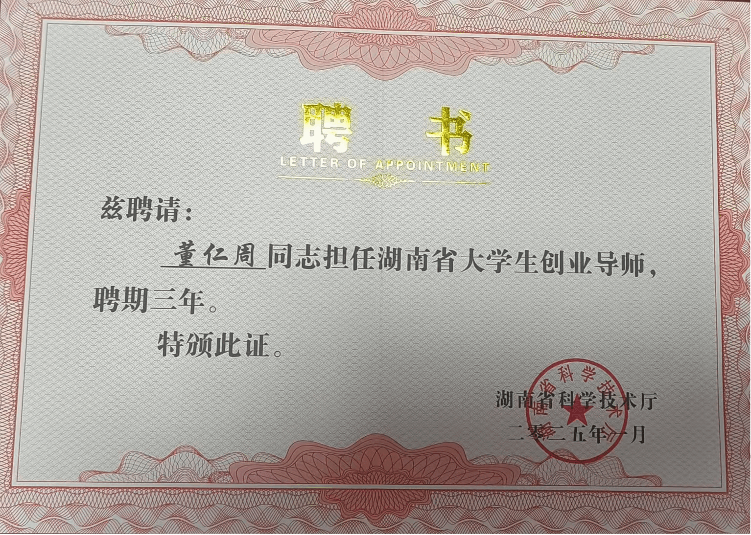 湖南省法务会计研究基地主任、2026世界杯官方合作网站法务会计研究所所长、二级教授董仁周博士受聘为湖南省首批大学生创业导师