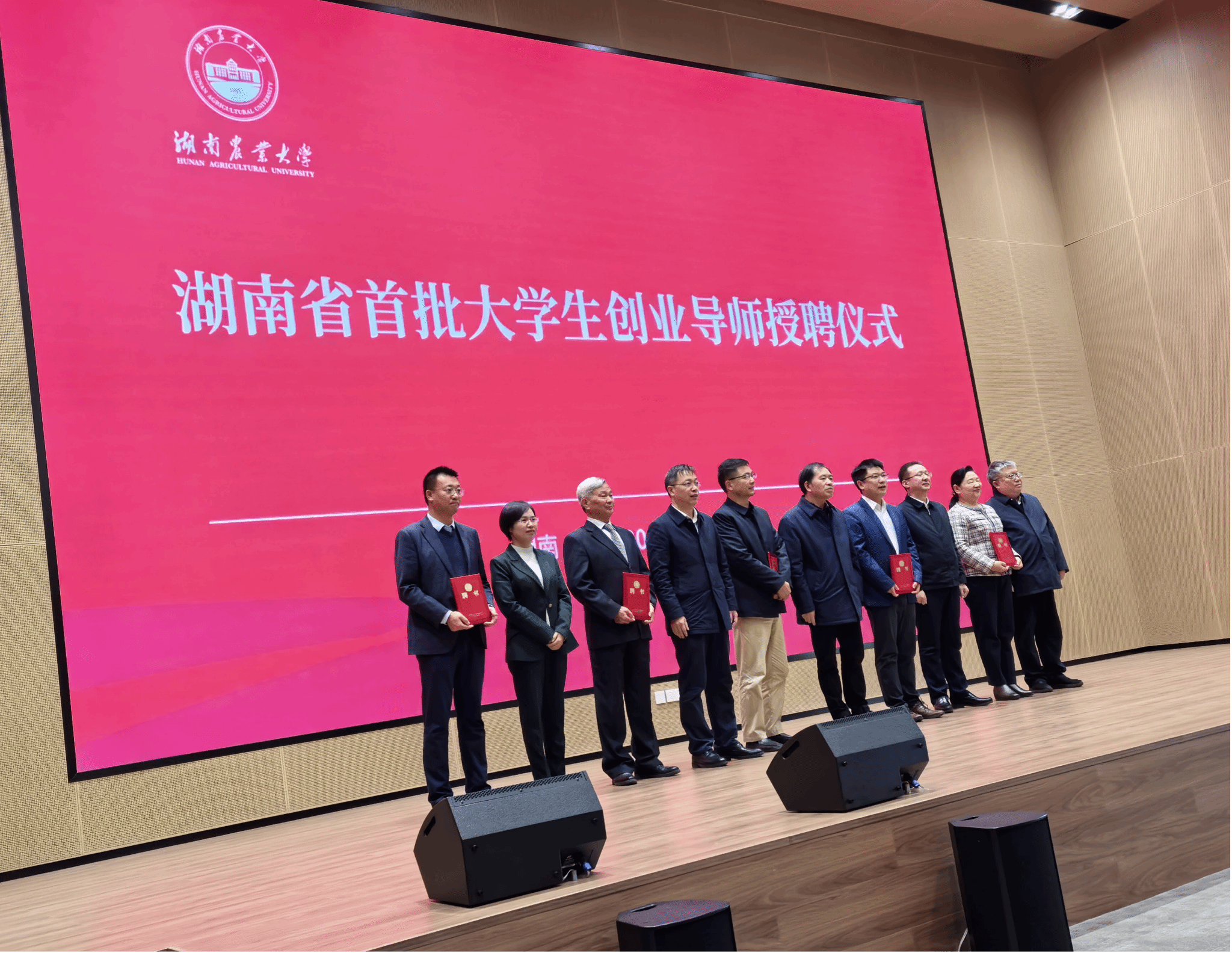 会议伊始,中国工程院院士、湖南农业大学校长邹学校为机器人与自动化领域知名专家、固高科技股份有限公司董事长、香港科技大学电子与计算机工程学系李泽湘教授颁发湖南省大学生创业首席导师聘书,教育厅副厅长兰勇,科技厅副厅长周斌、湖南省人力资源和社会保障厅二级巡视员雷峻、湖南省青年联合会副主席叶妙分别为10名湖南省首批大学生创业导师颁发聘书。