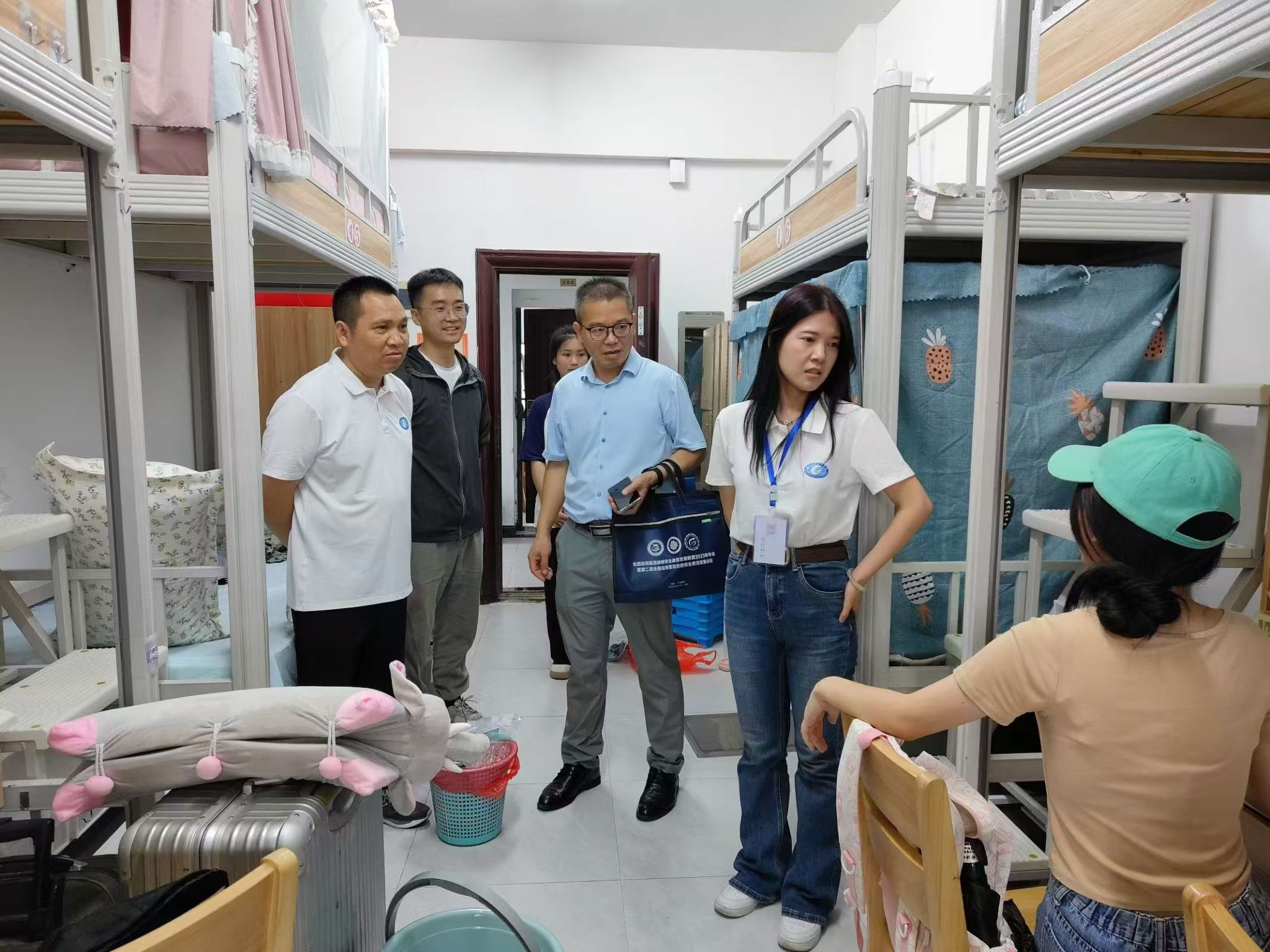 9月13日下午,学院党委书记何四海、党委副书记李茂华带领辅导员们深入学生宿舍,关心慰问新同学报到、住宿、校园生活等各方面情况,并与学生家长们亲切交流,勉励同学们尽快适应新环境,积极融入大学生活,主动构建和谐融洽的同学关系,提前规划大学生活,出色地完成学业,度过充实而意义非凡的大学生活。