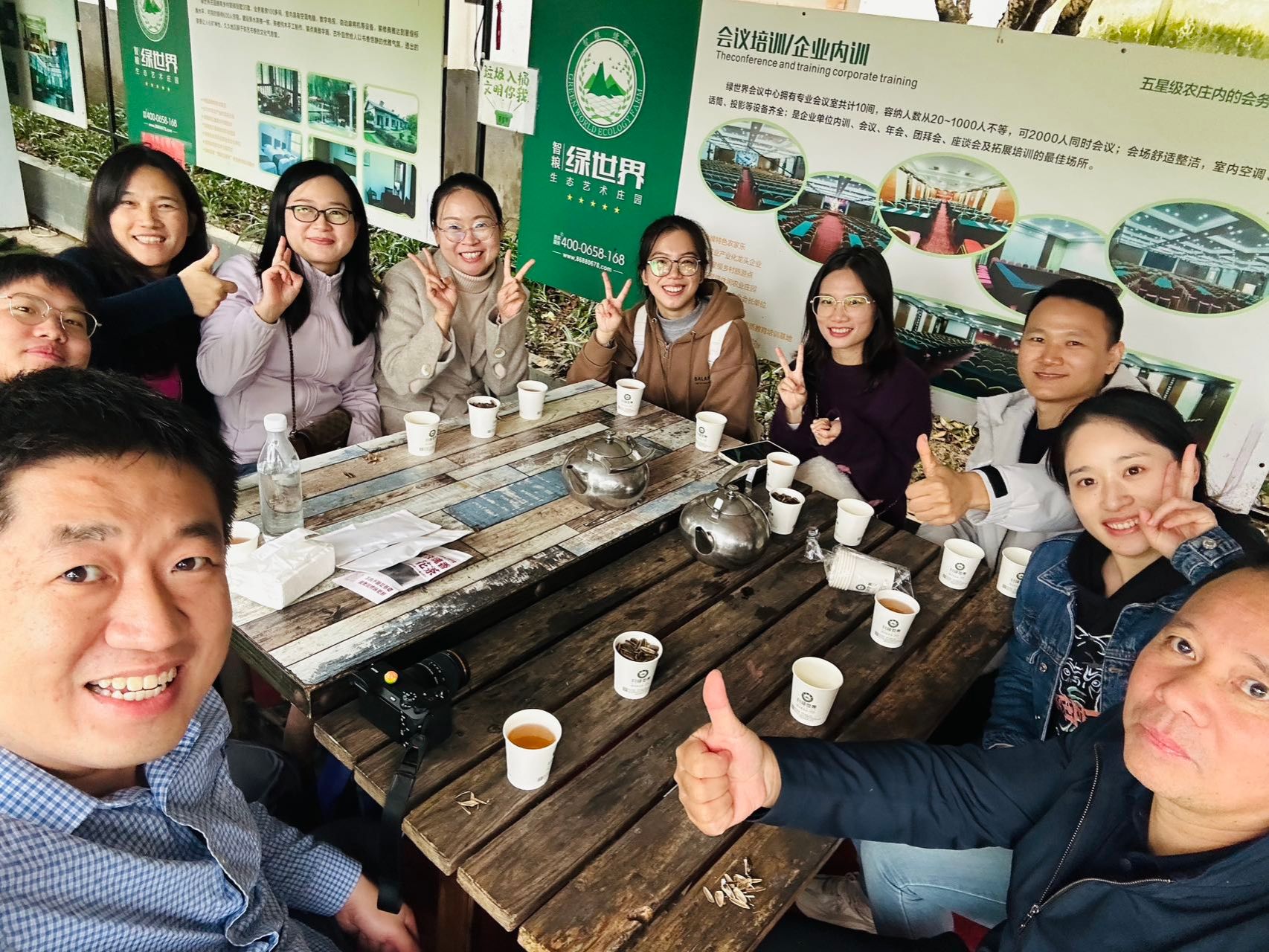 参观结束后,在充满田园风情的餐厅里,大家围桌而坐,品尝着原汁原味的农家菜肴,交流着工作与生活的心得,饭桌上的情谊,在美食的香气中愈发醇厚。之后大家沿着农庄内的步道缓缓而行,用脚步丈量秋日的尺度,用相机捕捉光影的变幻,用深呼吸感受负氧离子的清新,同时还开展了生态采摘,围炉煮茶和唱歌等活动。