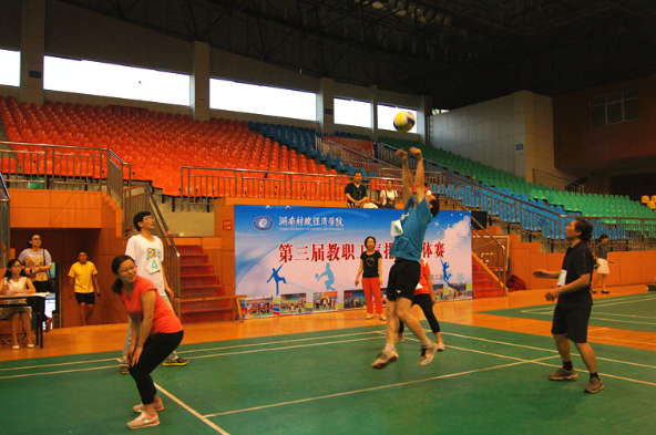 自5月15日开赛以来,体育馆内热闹纷纷,气氛活跃,无论是参赛的队员还是拉拉队员都热情高涨,信心满满。党委书记肖湘愚、校长伍中信、党委副书记晏金平、副校长王焕清等校领导纷纷前来观看比赛,为参赛队员们加油助阵。初赛场上,青年队员们身手轻快敏捷,中年队员们经验老成,彼此互相密切配合,全力拼搏,一传、二垫、三扣,不断地来回,用心打着每一个球。赛场上加油呐喊呼声不断,激动人心。