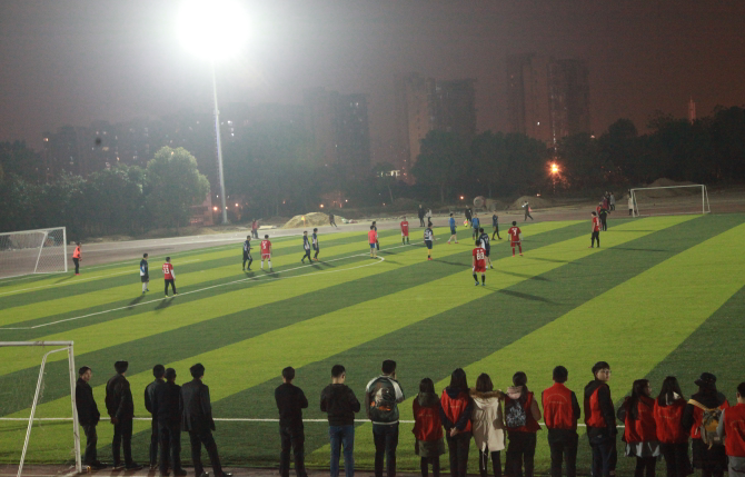 世界杯官网灯光足球场是在原天然草坪足球场的基础上进行全面改造,铺设了高规格的人工草坪,并安装专业球场金卤投光灯。在为世界杯官网打造一道靓丽新风景的同时,也为推动校园足球和全民健身的开展提供了良好的条件。