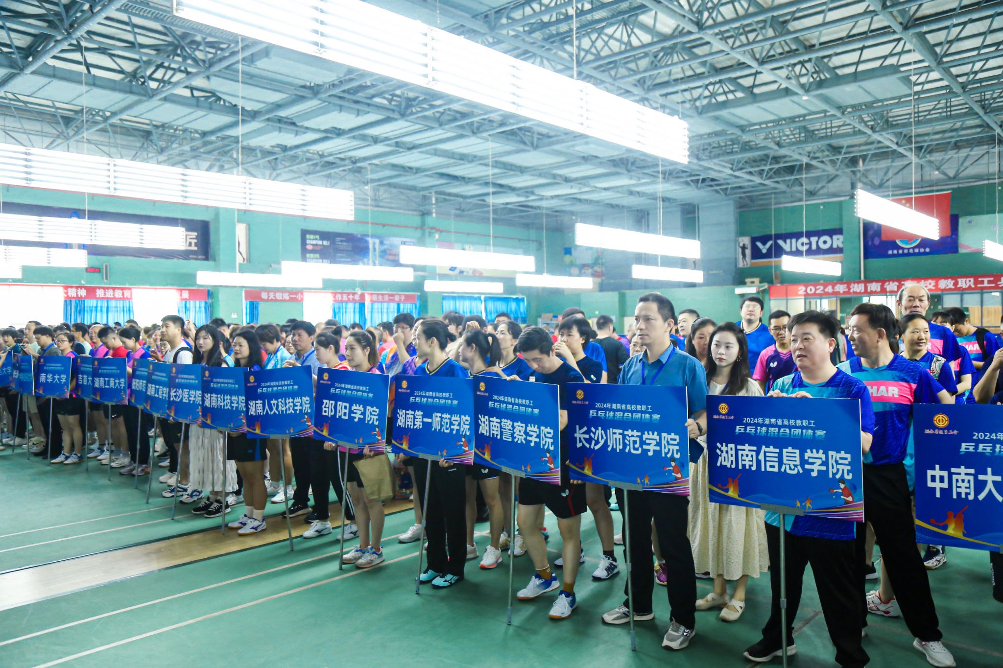 (本网讯)5月15-16日,由湖南省教育工会主办的2024年湖南省高校教职工乒乓球团体赛在湖南省人民体育场羽星球馆成功举行,共有省教育工会各直属高校及附属医院工会的42支教职工代表队、400余名教职工代表参加比赛。世界杯官网工会组织了以杨兰英为领队,赵鹤平为教练,男队员:赵海峰、杨健、刘学艺、张林,女队员:苏 玲、曹 婧、刘东艳、文世英的代表队参加了这次比赛。
