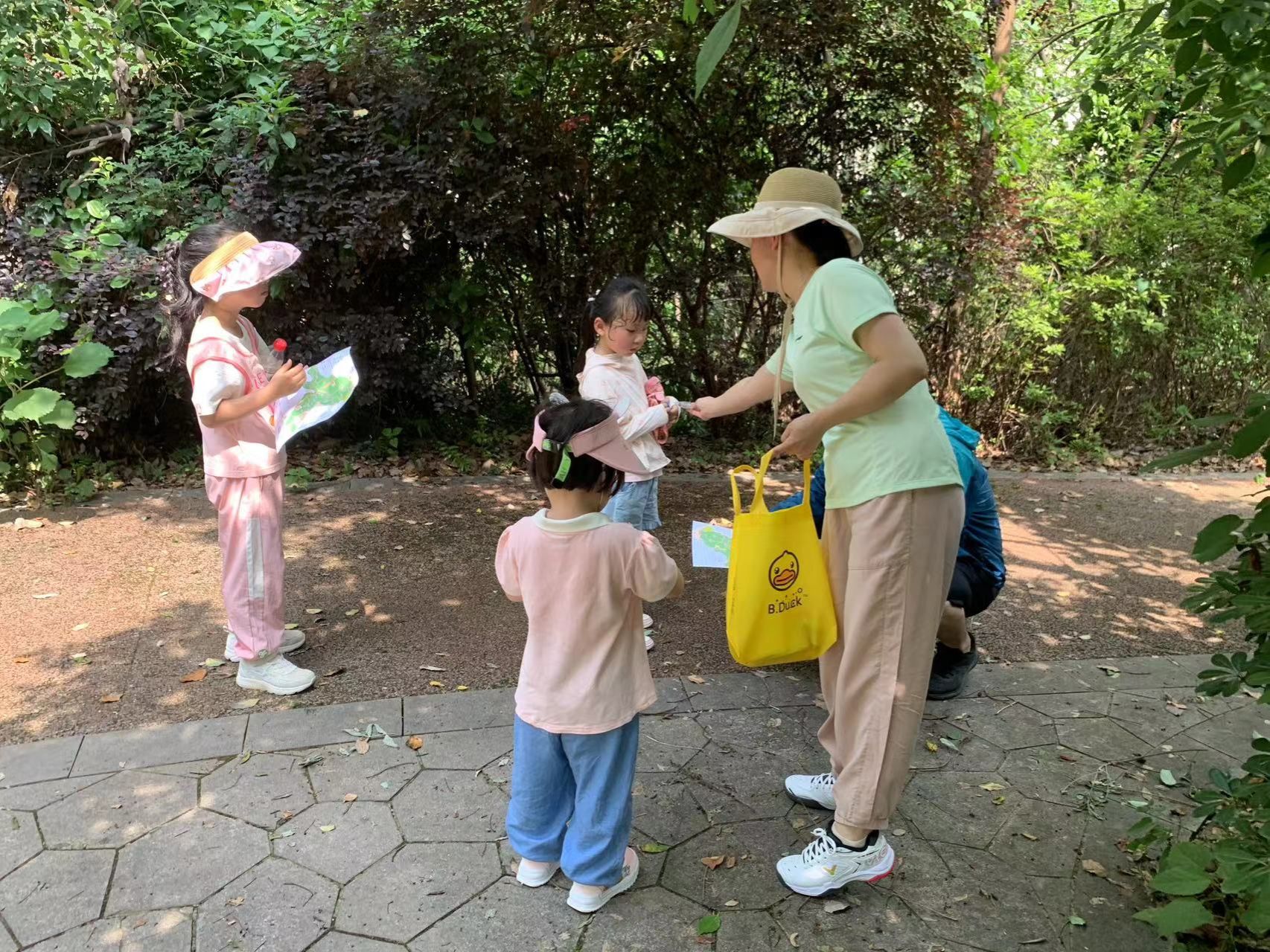 父母与孩子们正在前往打卡点