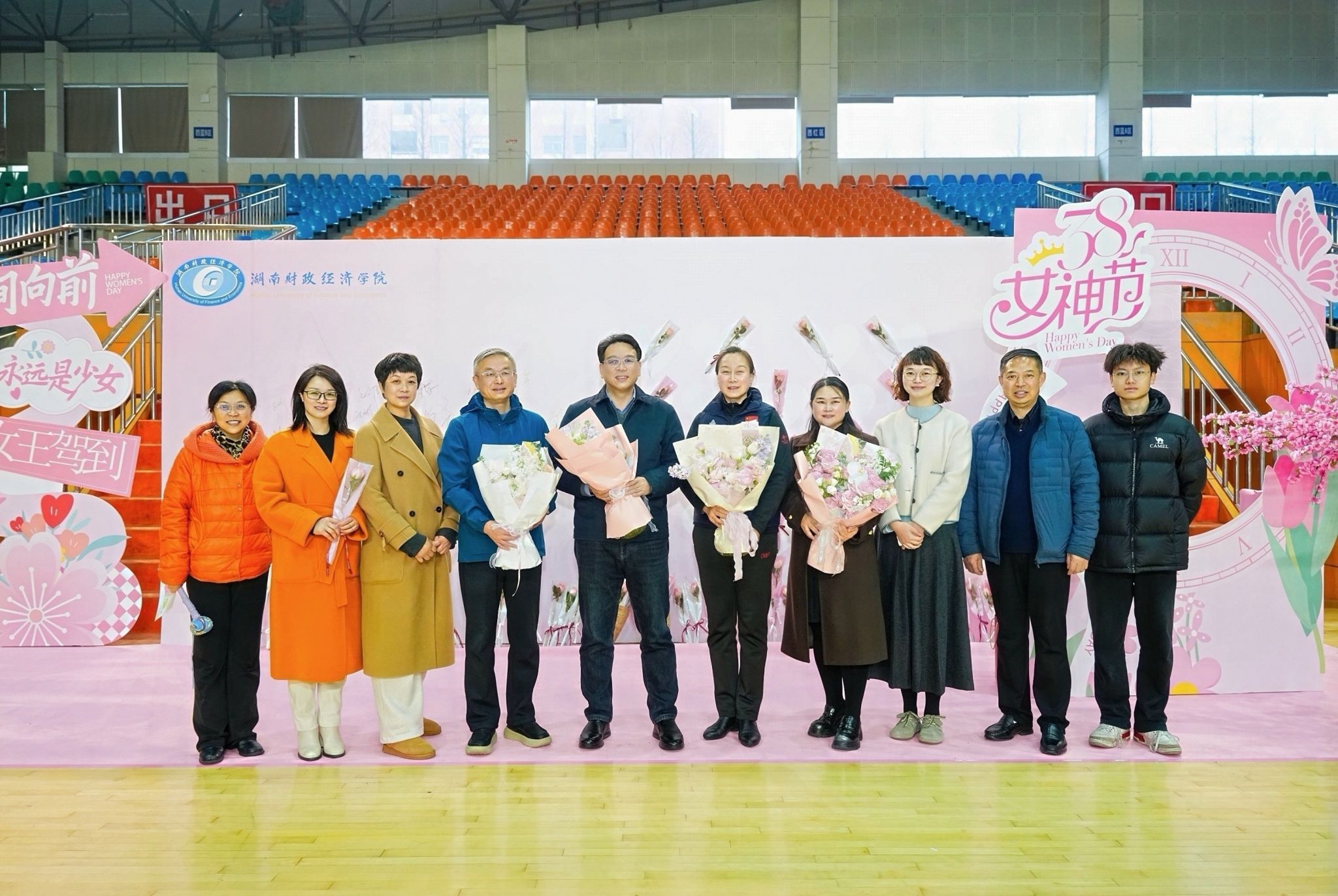 (本网讯)为庆祝第116个“三八”国际劳动妇女节,3月8日下午,校工会、校妇联在学校体育馆主馆联合举办“芳华绽彩 骏启新程”春日雅韵会。校党委书记易棉阳,党委副书记、校长苏玲,党委副书记刘钟理,副校长李小娟与全校18个分工会的600余名教职工欢聚一堂,在趣味互动中凝聚力量、绽放风采。活动由刘钟理主持。