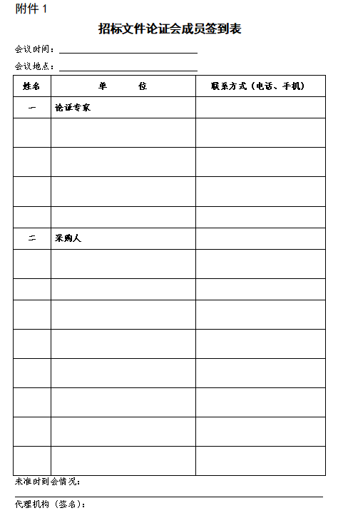 招标文件论证会成员签到表