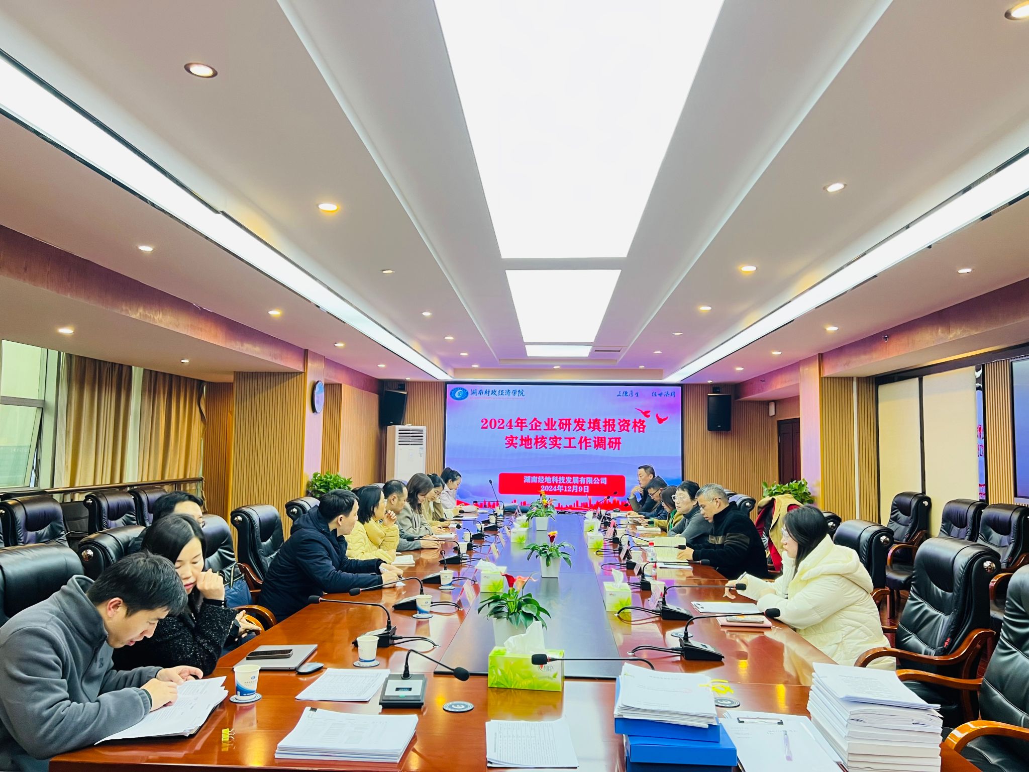 (本网讯)为加强企业研发年报数据质量管控,12月9日下午,省市两级统计局组成调研工作组,由省统计局人口(社科)处副处长王丹、长沙市统计局总统计师胡睿懿、长沙市统计局人口和社会科技统计处处长余琦带队到公司开展2024年企业研发填报资格实地核实工作调研。公司董事长魏晓、副研究员张鹏博、财务部部长张娟、技术服务部部长邱振宇等陪同调研。