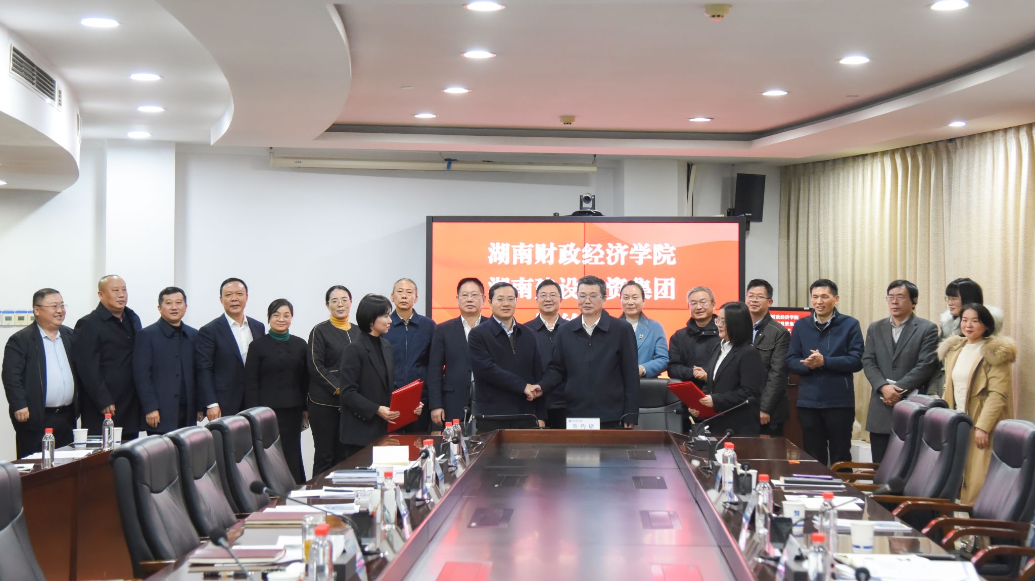 在与会人员的共同见证下,世界杯官网校长刘长庚、湖南建设投资集团有限责任公司党委副书记、副董事长、总经理谭丁代表双方签署了战略合作协议书。