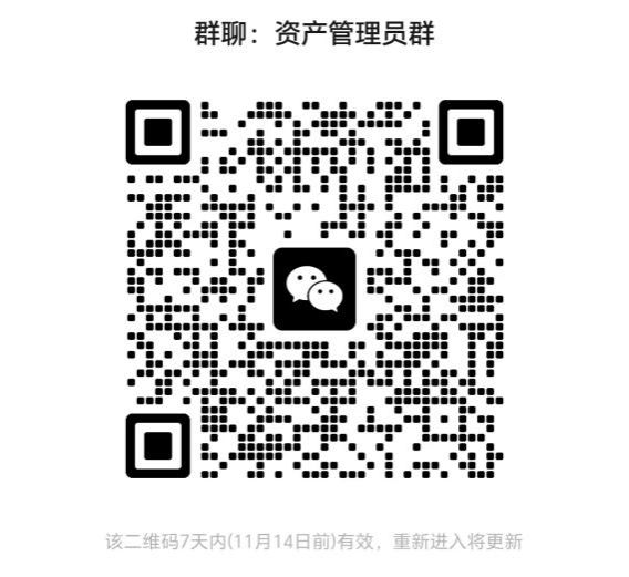 为便于后续工作开展、交流和培训,请新一轮资产管理员扫码加入“资产管理员群”微信群。