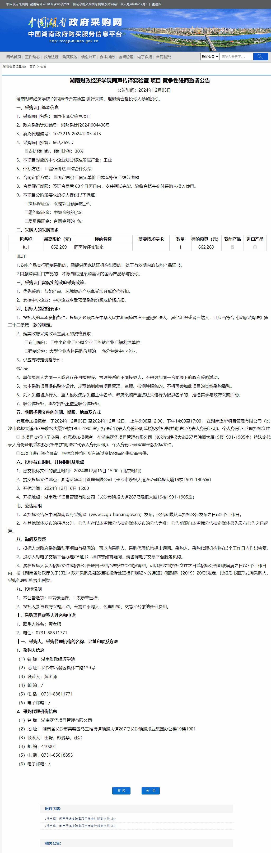 湖南省政府采购网:2026世界杯官方合作网站同声传译实验室项目竞争性磋商邀请公告