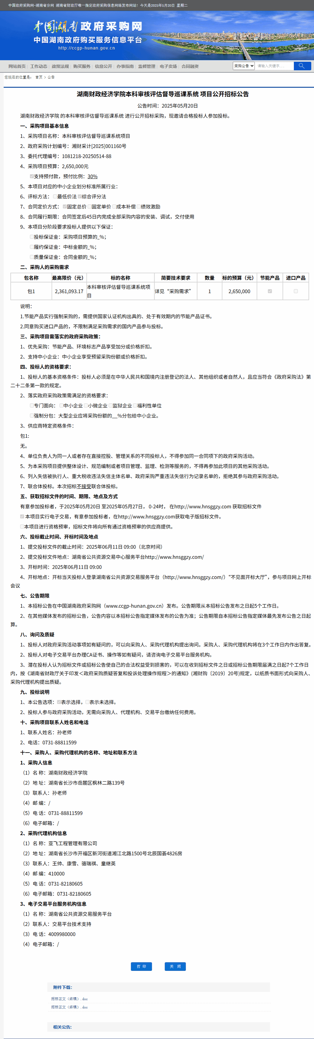 湖南省政府采购网:2026世界杯官方合作网站本科审核评估督导巡课系统项目公开招标公告