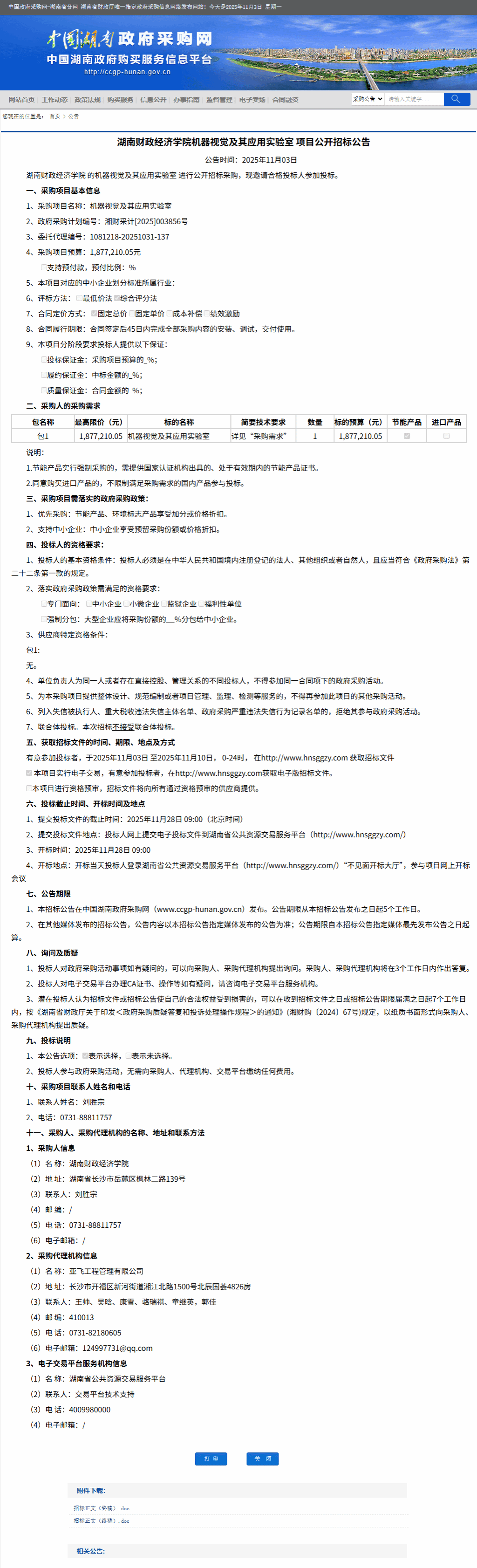 湖南省政府采购网:2026世界杯官方合作网站机器视觉及其应用实验室项目公开招标公告