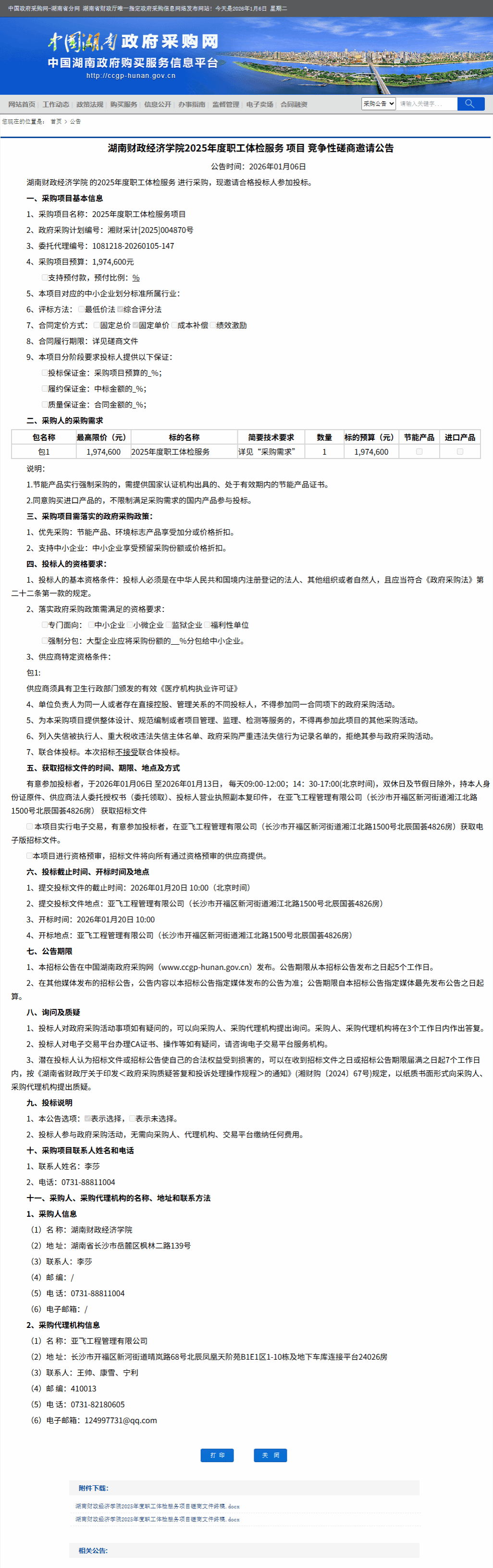 湖南省政府采购网:2026世界杯官方合作网站2025年度职工体检服务项目竞争性磋商邀请公告