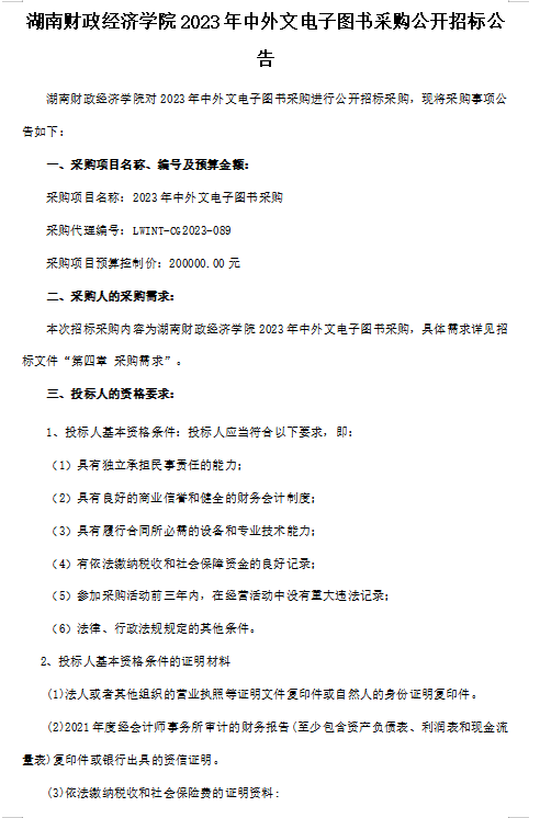 2023年中外文电子图书采购公开招标公告