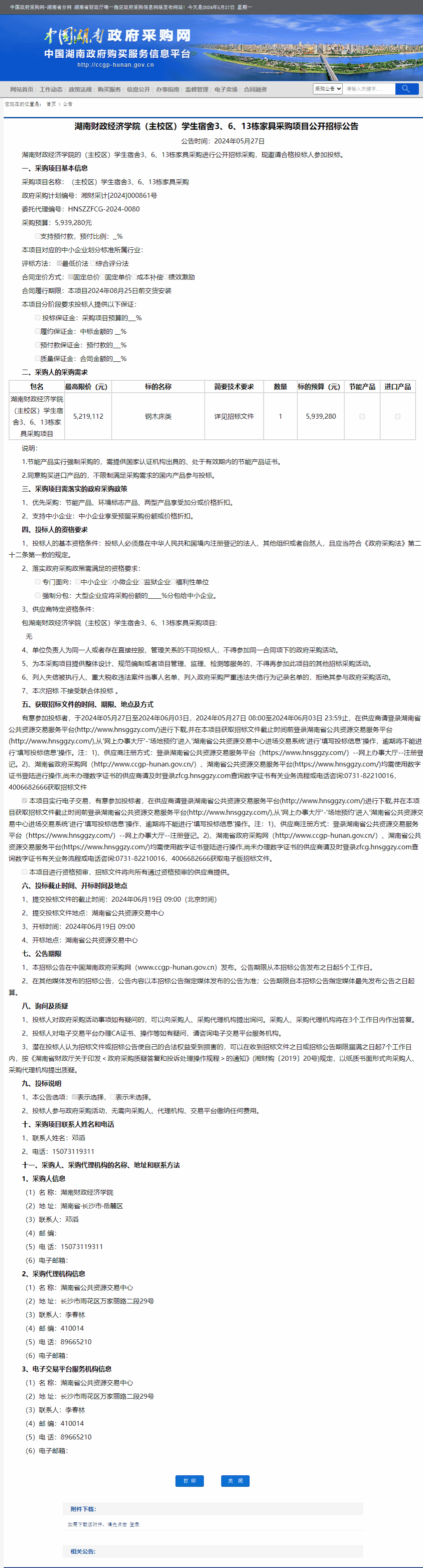 湖南省政府采购网:2026世界杯官方合作网站(主校区)学生宿舍3、6、13栋家具采购项目公开招标公告