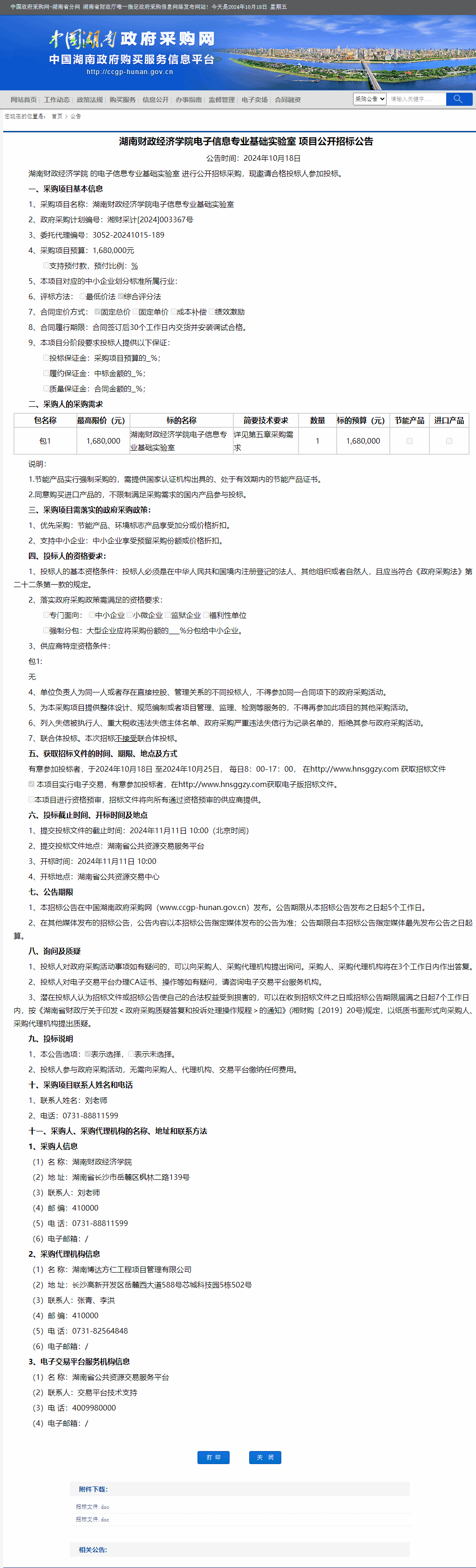 湖南省政府采购网:2026世界杯官方合作网站电子信息专业基础实验室 项目公开招标公告