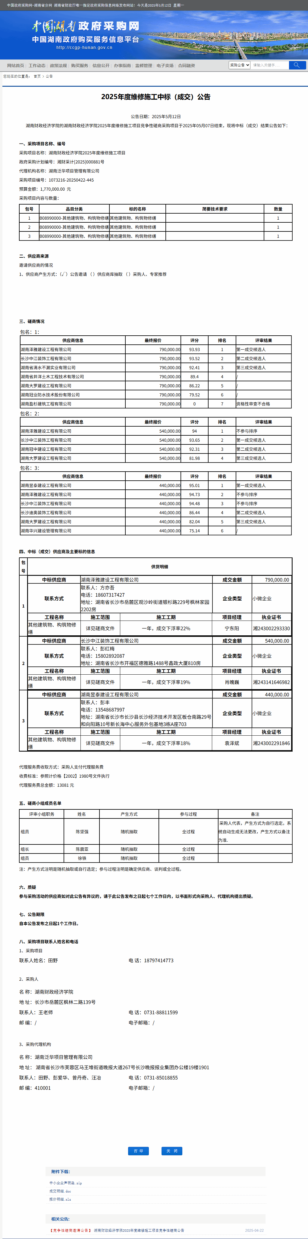 湖南省政府采购网:2026世界杯官方合作网站2025年度维修施工中标(成交)公告