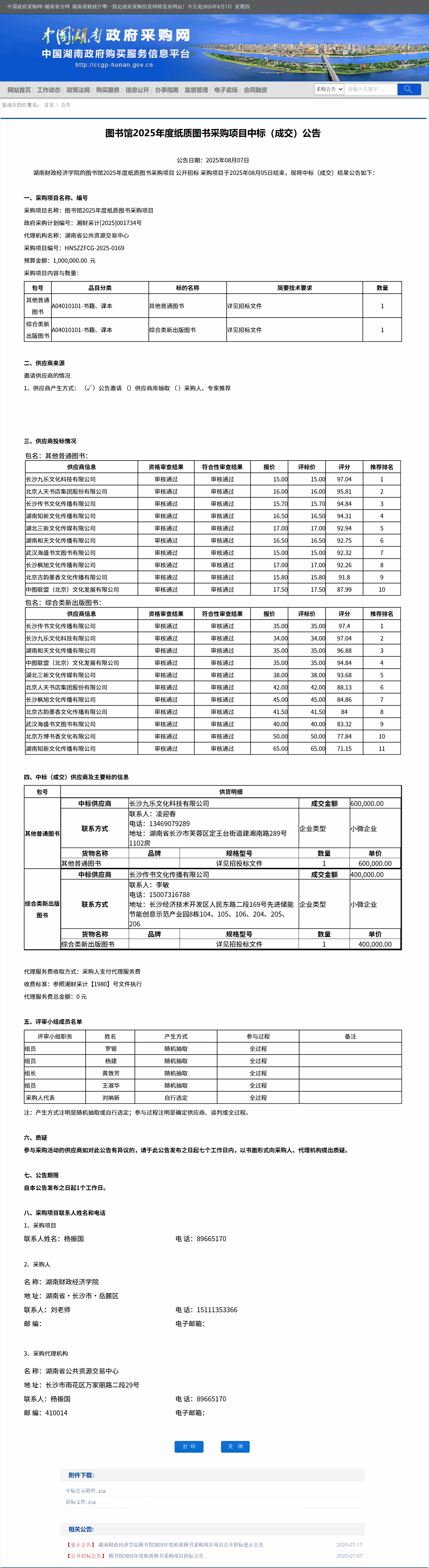 湖南省政府采购网:2026世界杯官方合作网站图书馆2025年度纸质图书采购项目中标(成交)公告