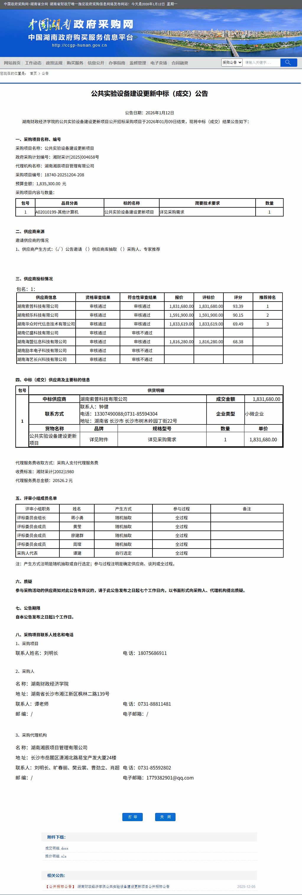 湖南省政府采购网:2026世界杯官方合作网站公共实验设备建设更新中标(成交)公告