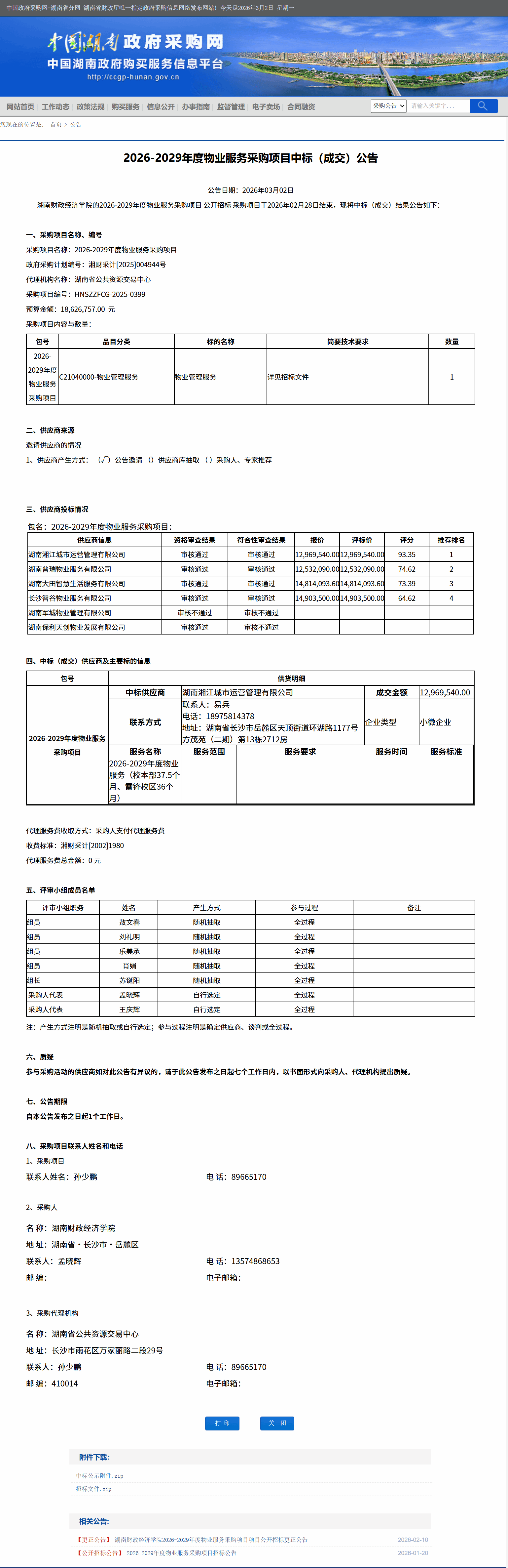 湖南省政府采购网:2026世界杯官方合作网站2026-2029年度物业服务采购项目中标(成交)公告