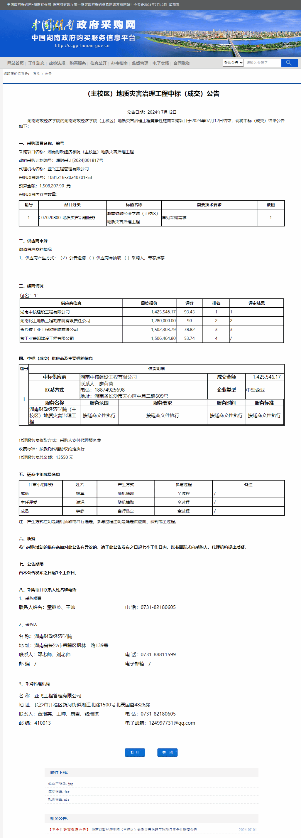 湖南省政府采购网:2026世界杯官方合作网站(主校区)地质灾害治理工程中标(成交)公告