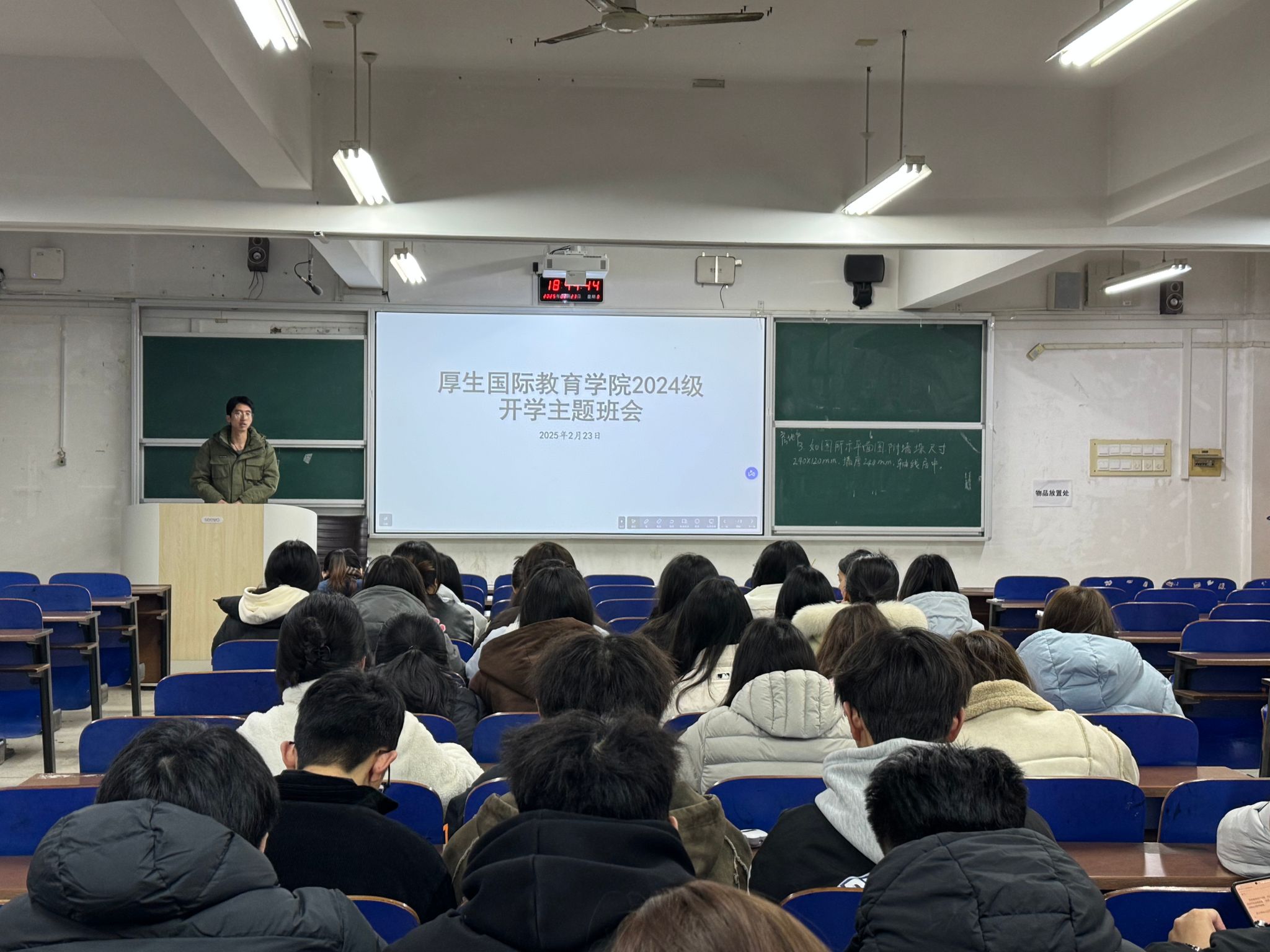 为确保全面有序做好2025年春季开学工作,严格贯彻落实学校关于新学期开学前后工作的相关指示,厚生国际教育学院对学生返校前的健康安全、返校后的疫情防控以及扎实做好学生管理等工作进行了梳理和总结,为新学期学生返校开学做好充分准备,在学院统一部署下,2月23和24日,学院领导和各辅导员老师深入班级,组织召开了春季开学“收心”班会。