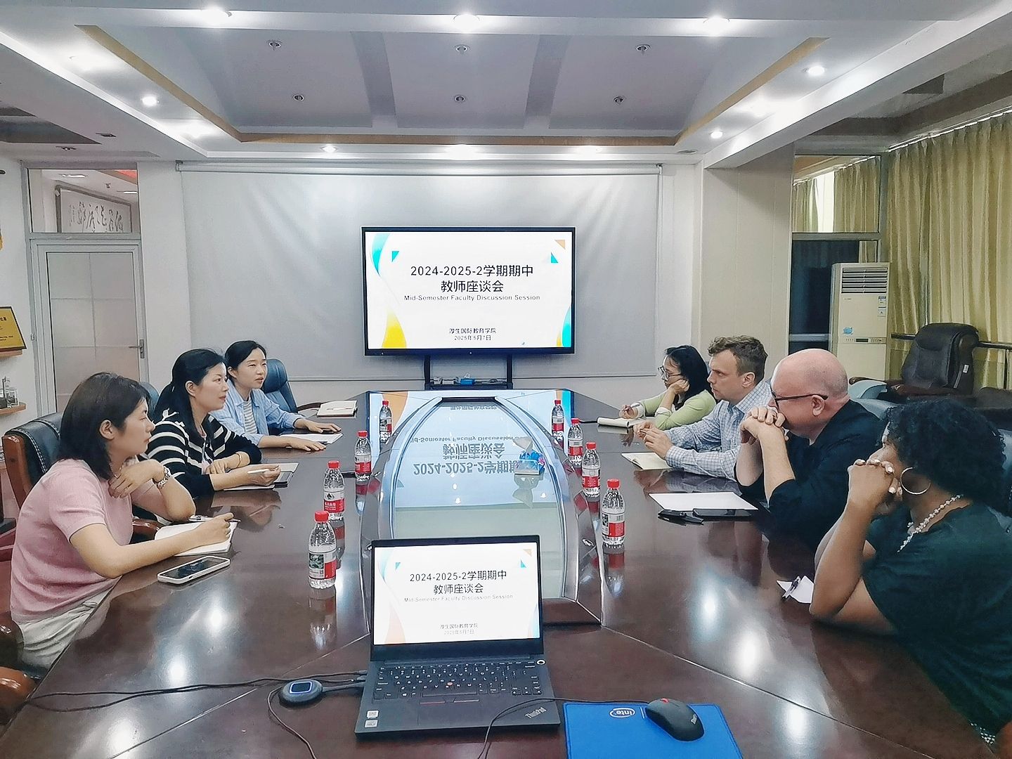 在教师座谈会环节,各位教师代表踊跃发言,结合自身丰富的教学实践经验,提出了许多极具建设性的意见。专业课外教 David 指出,现有的专业课评估方式有待创新,应更加注重过程性实践考核,以全面评估学生的专业能力与实践水平。语言课外教 Lamonica 则希望学院能够定期举办教师会议,构建常态化教学反馈机制。与会教师还就数字化教学资源建设、跨文化教学策略等分享了教学经验。