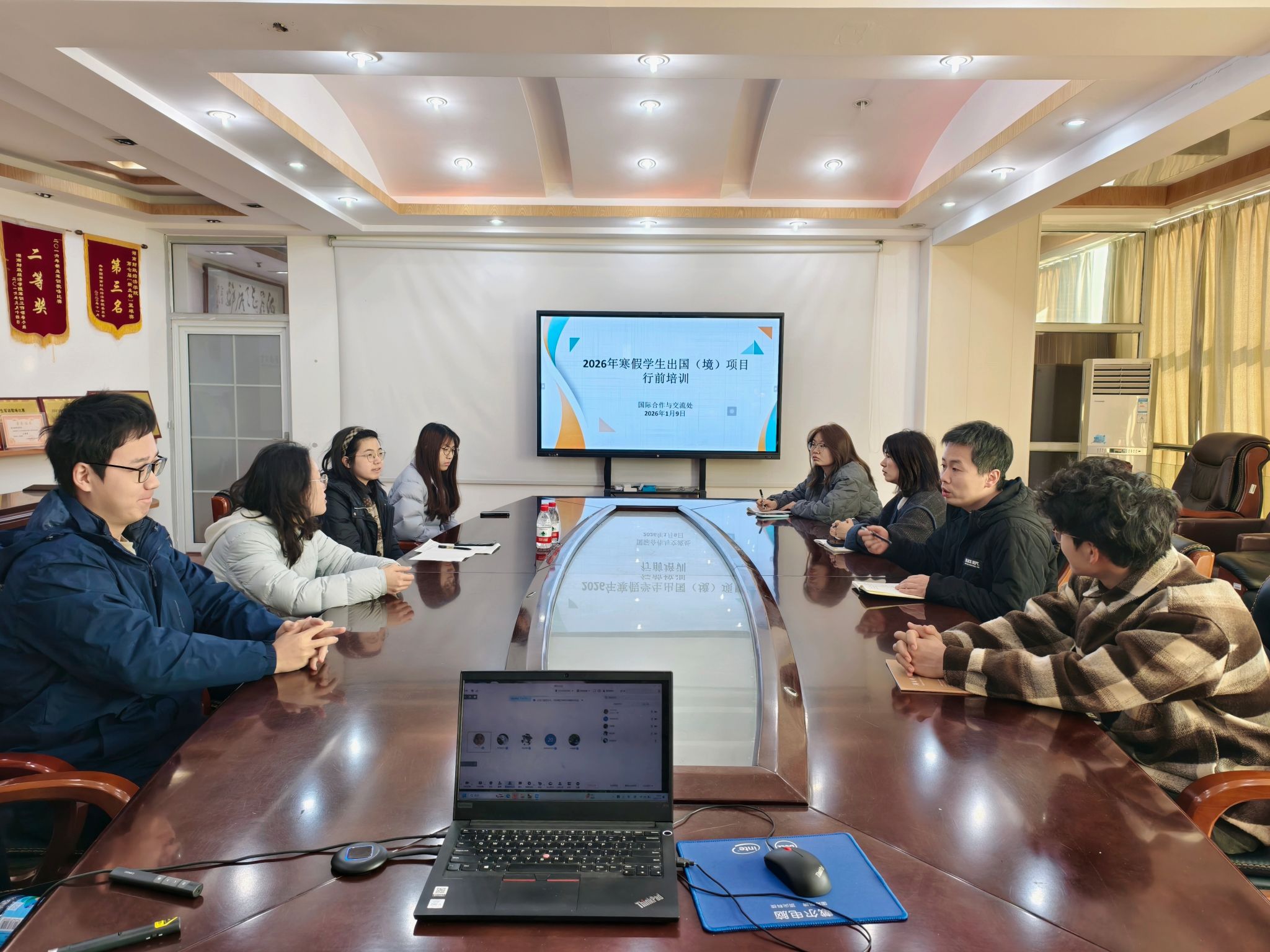 为贯彻落实教育部“平安留学”工作部署,切实保障学生寒假出国(境)交流项目顺利开展,强化学生外事安全与责任意识,1月9日,世界杯官网国际合作与交流处组织开展寒假出国(境)项目行前培训会。会议采取线上线下相结合的形式,国际合作与交流处处长傅佳出席,寒假期间参加各项交流项目的全体同学参加会议。