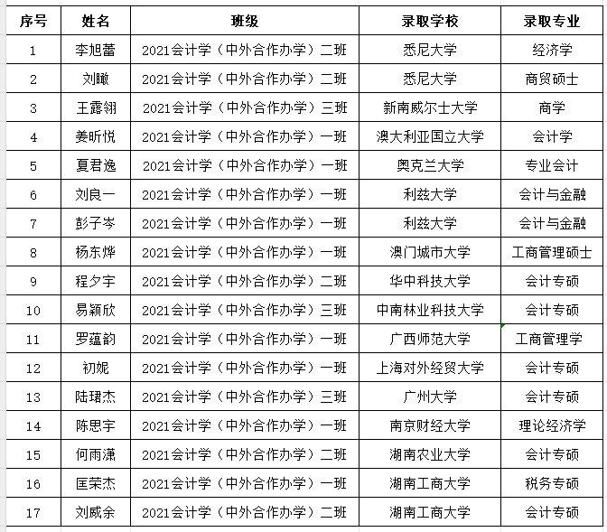 附表2:会计学(中外合作办学)专业2025届学生考研光荣榜