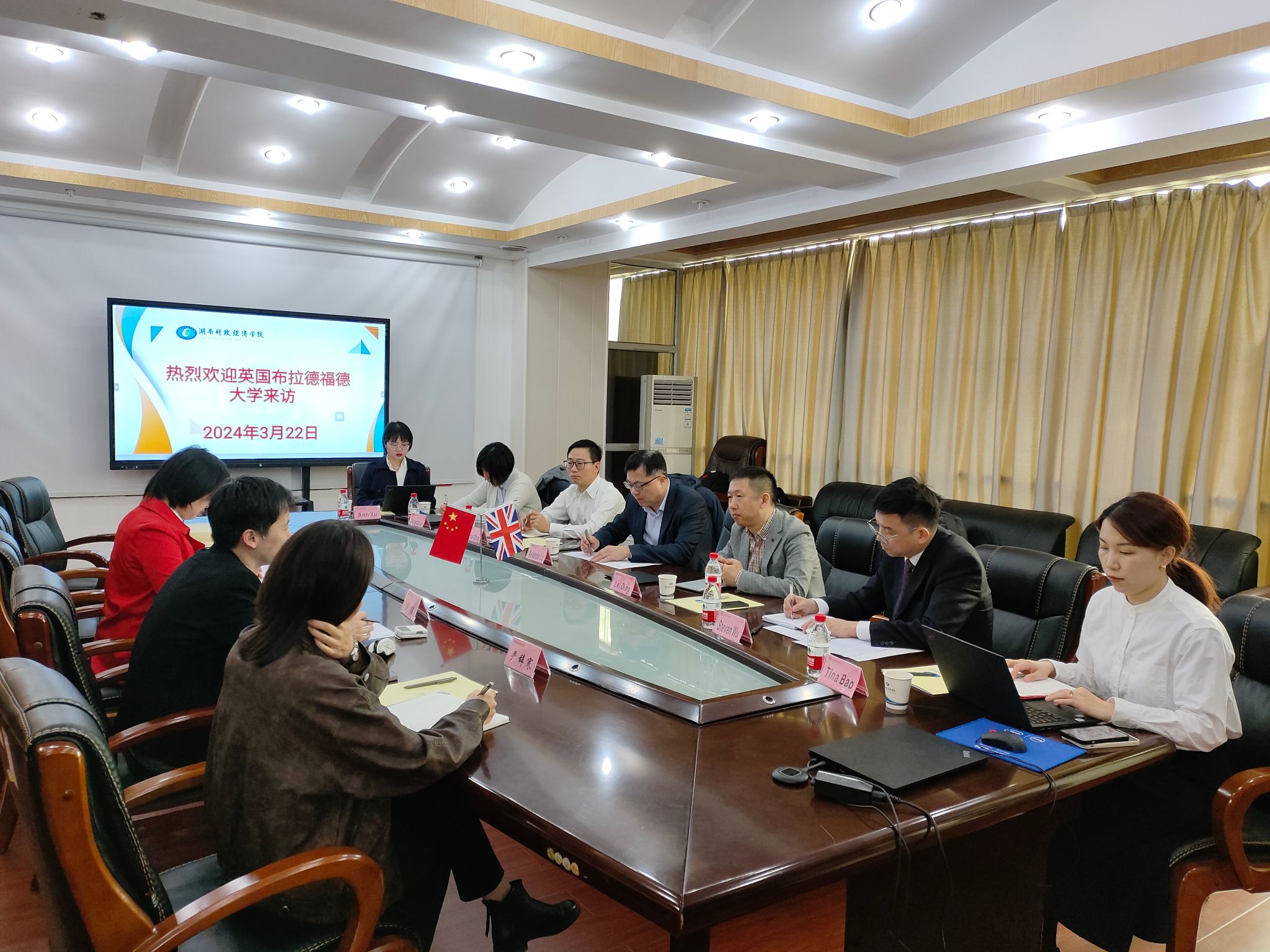 国际交流合作处副处长傅佳代表学校对丁雷一行到访表示欢迎,并简要介绍了两校相关合作开展情况,希望未来两校能在更多商科专业领域进行探索和挖掘,创新和培育合作新项目、构建人才培养新体系,在本科生联合培养、合作科研等方面探索新的合作模式。Steven Wu介绍了布拉德福德大学的优势学科,并表示双方深化国际合作理念与实践方面的思路高度契合,希望两校能在新的学科专业领域及师生访学项目共同构建全方位、多领域、多层次国际交流与合作。