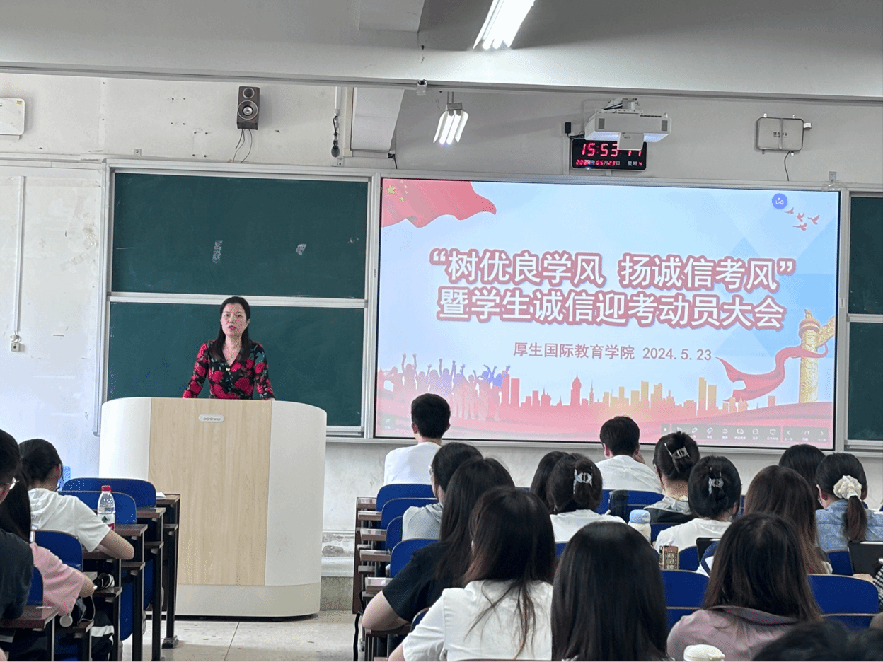 本次诚信迎考动员大会的召开,充分彰显了厚生国际教育学院对于诚信教育的重视和落实力度,使同学们深刻认识到了诚信考试的重要性,从思想深处树立诚信考试的意识,严格遵守学校的各项考试纪律规定,营造优良的学习氛围和风气。